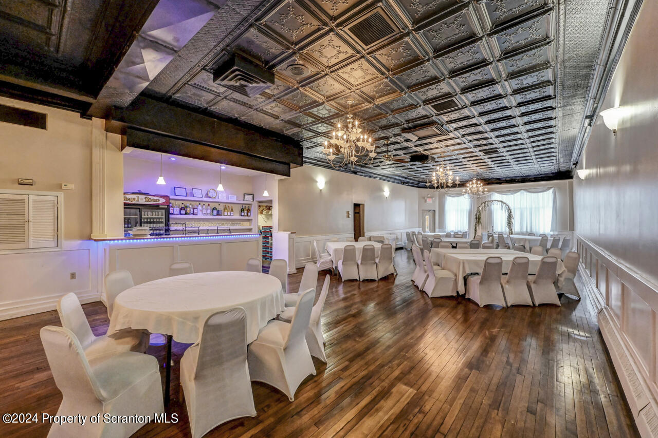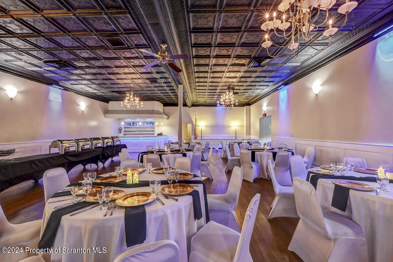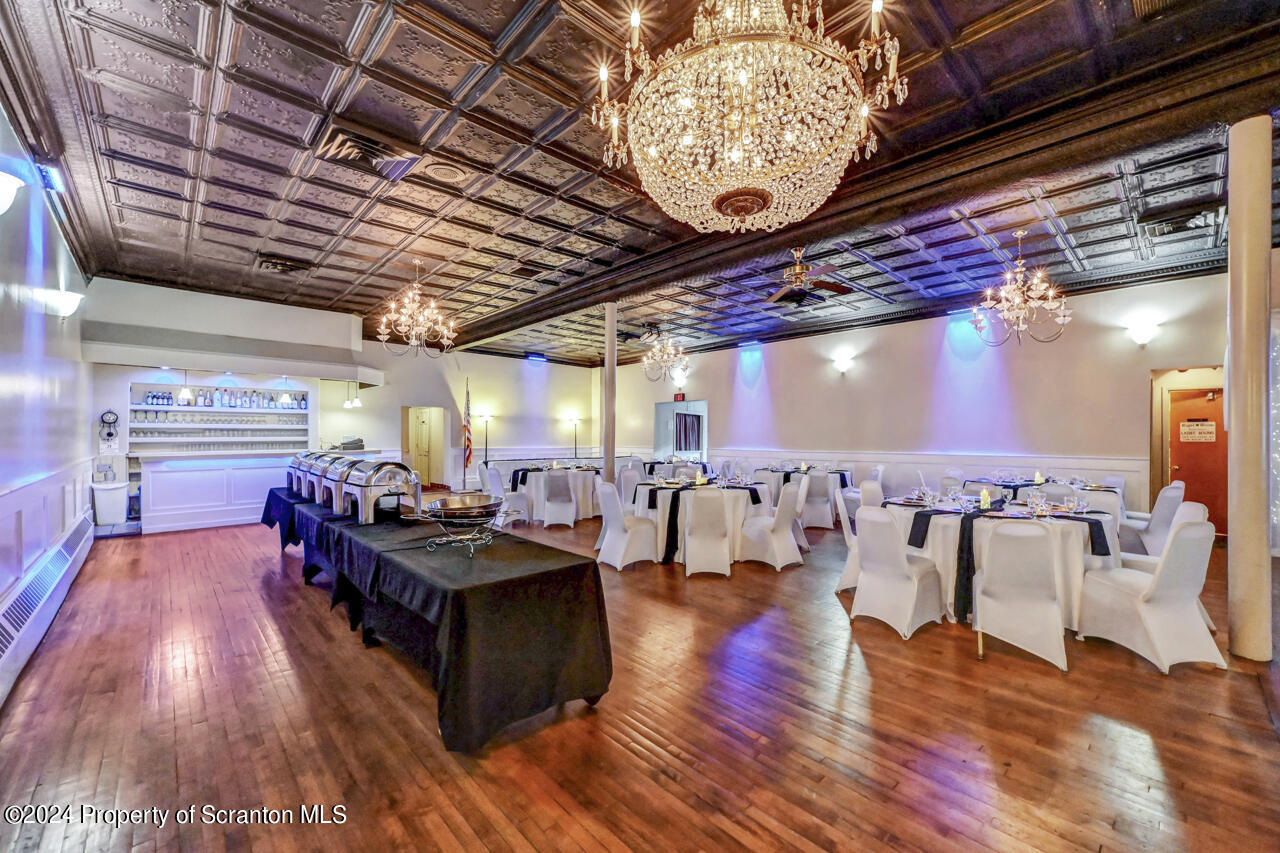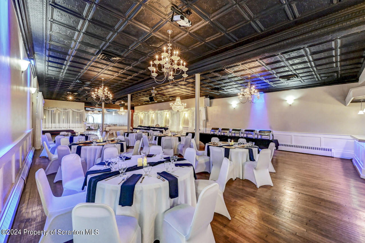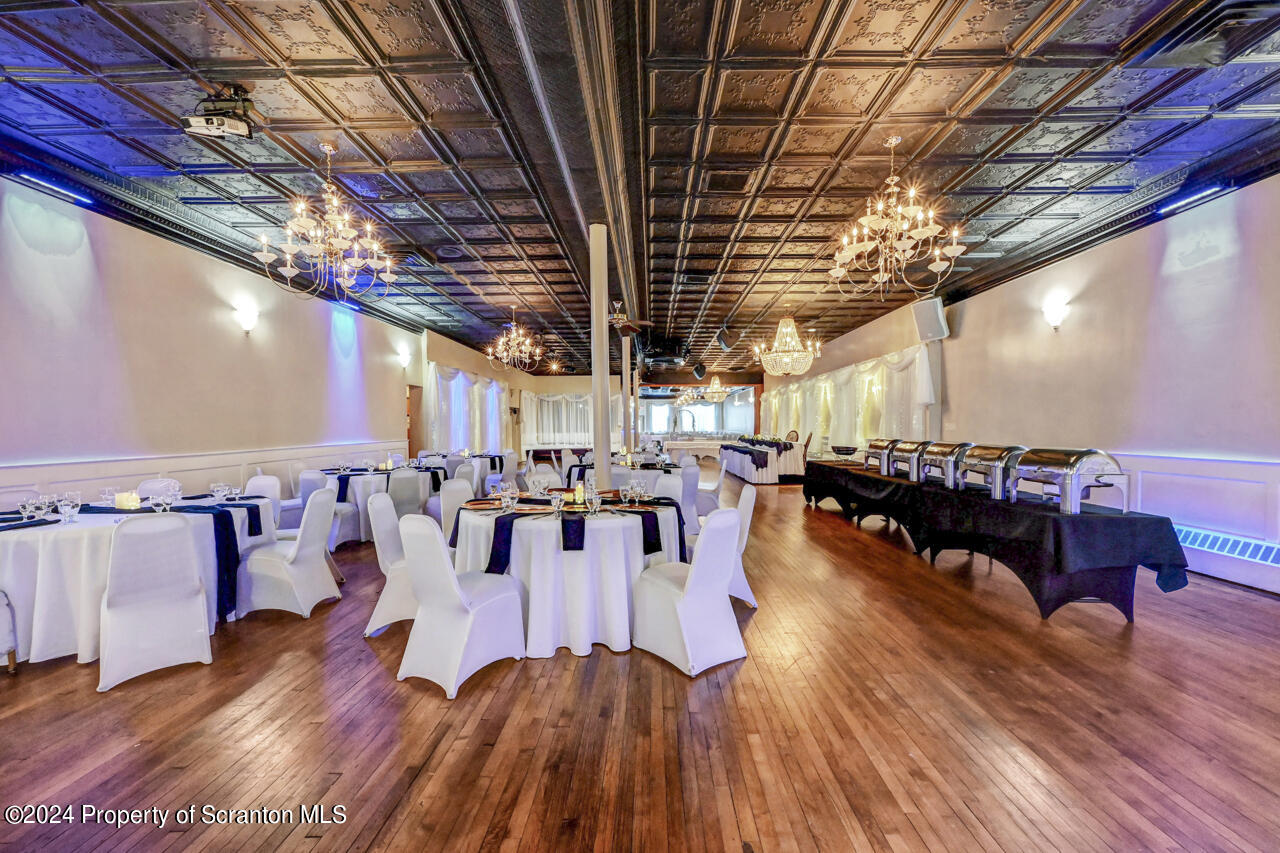Multi-use property with banquet facility, storefront, deli, and apartments.