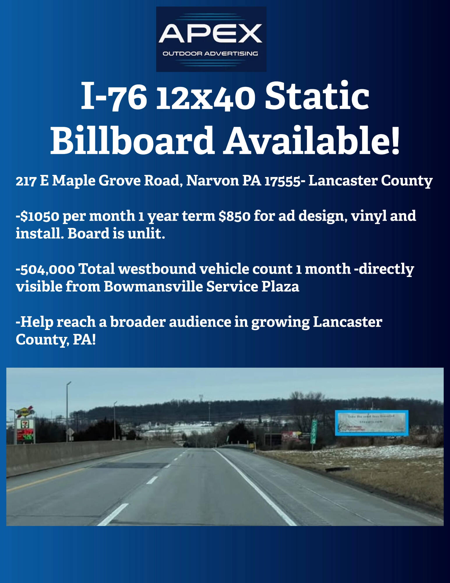 Billboard available for lease along I-76.