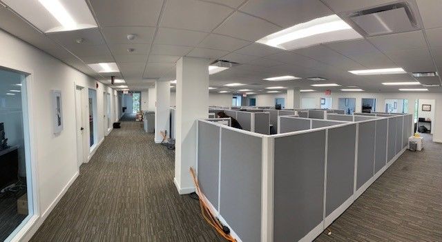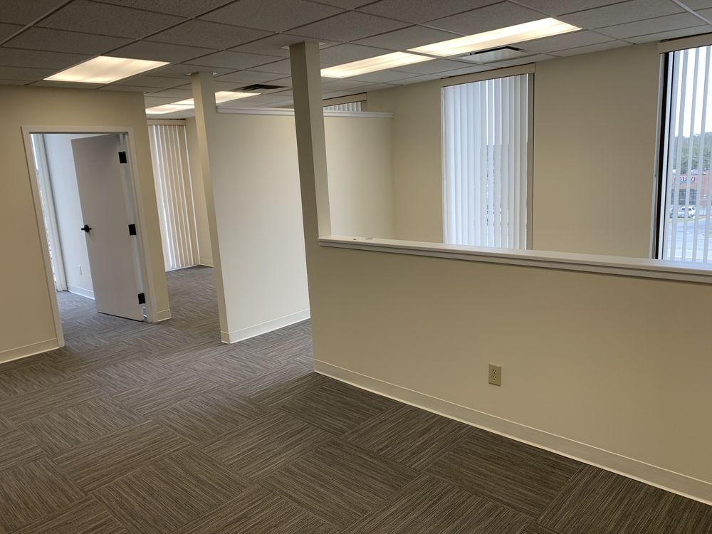 Second-generation office space with open and private workspaces available.