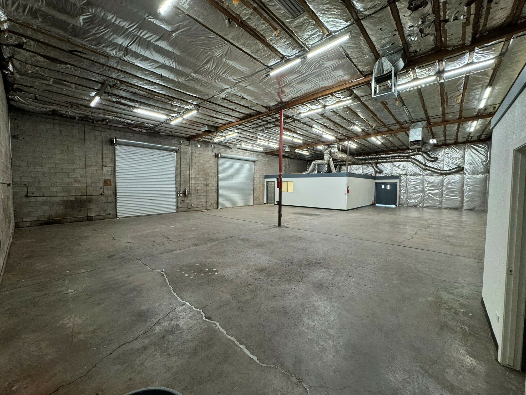 Remodeled showroom with roll-up bays, ideal for automotive or industrial.