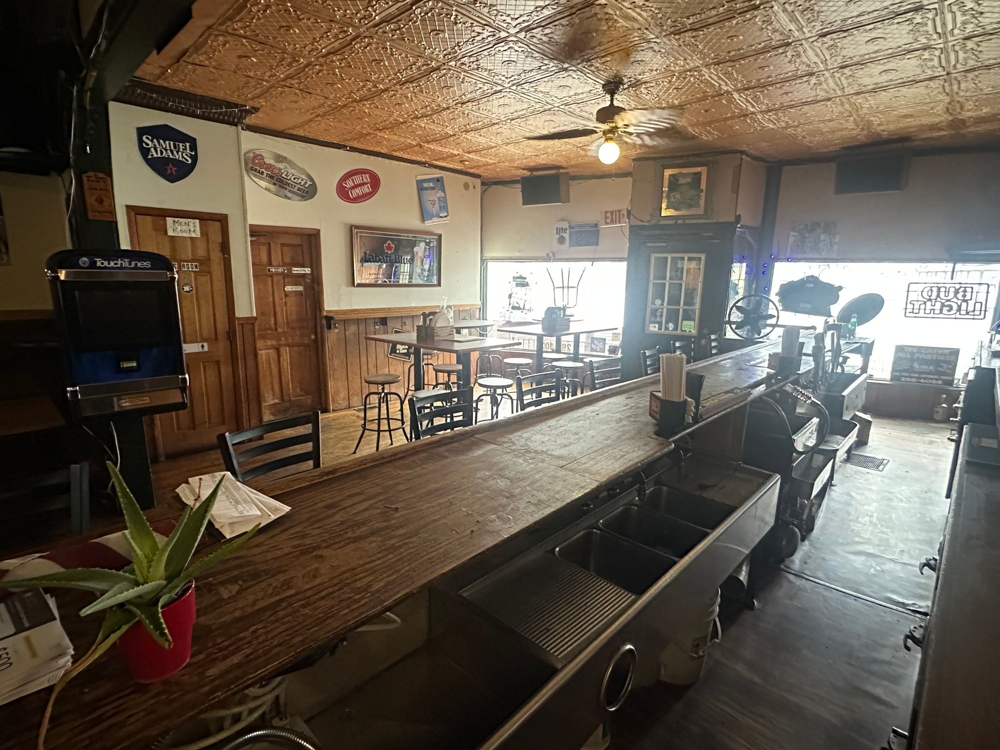 Turnkey restaurant with banquet space and redevelopment potential.