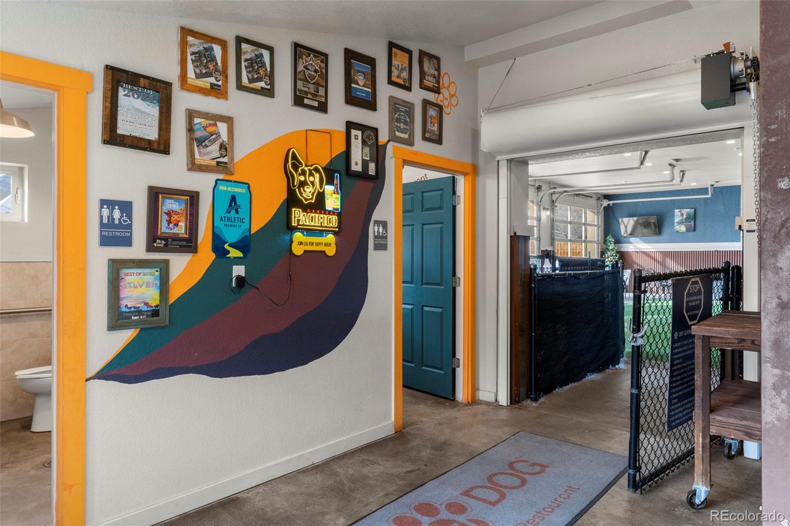Turnkey restaurant with indoor/outdoor dining and pet exercise areas.