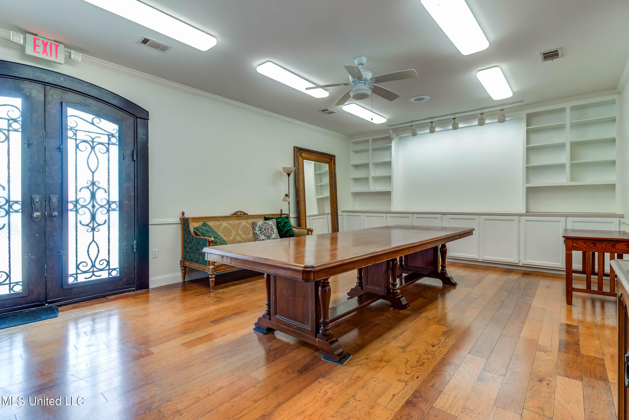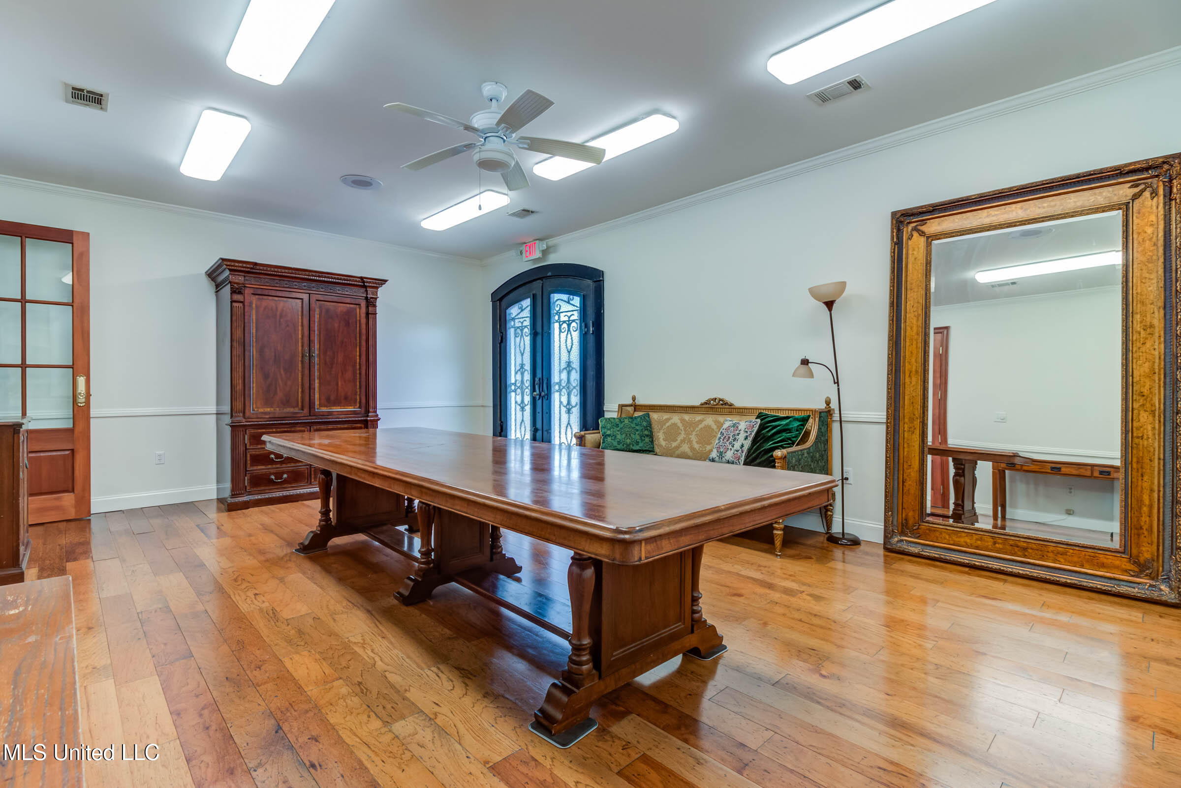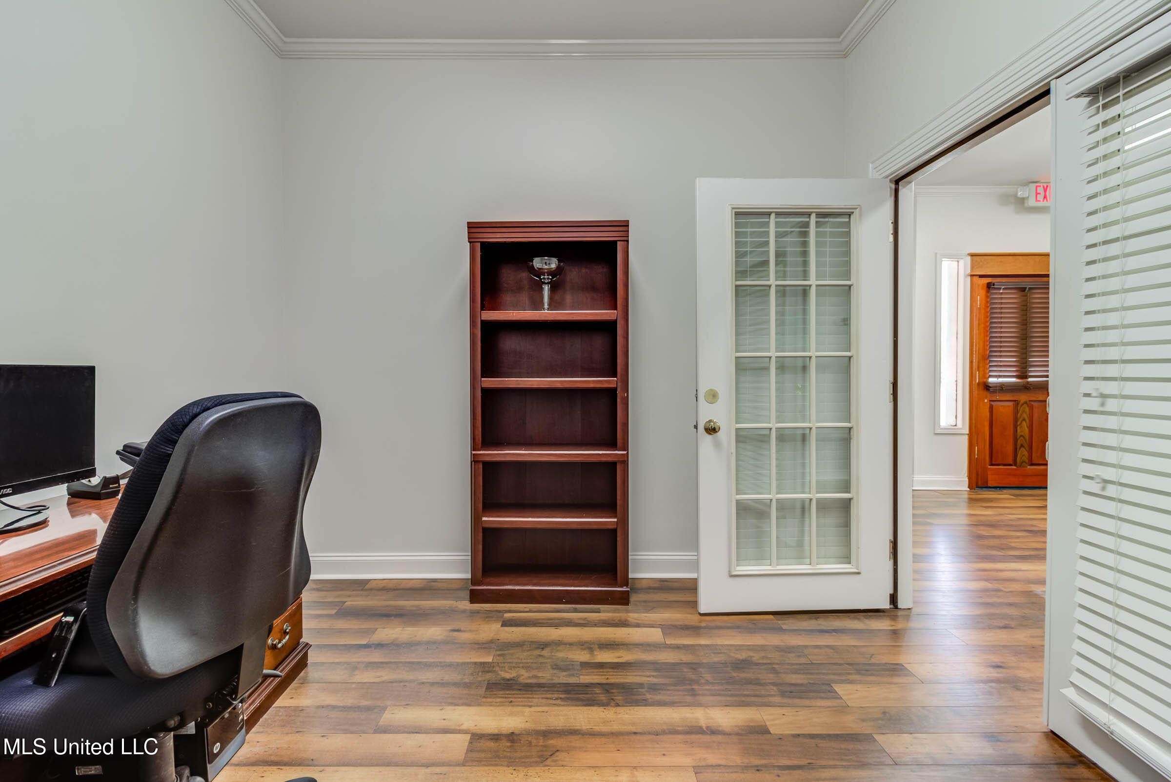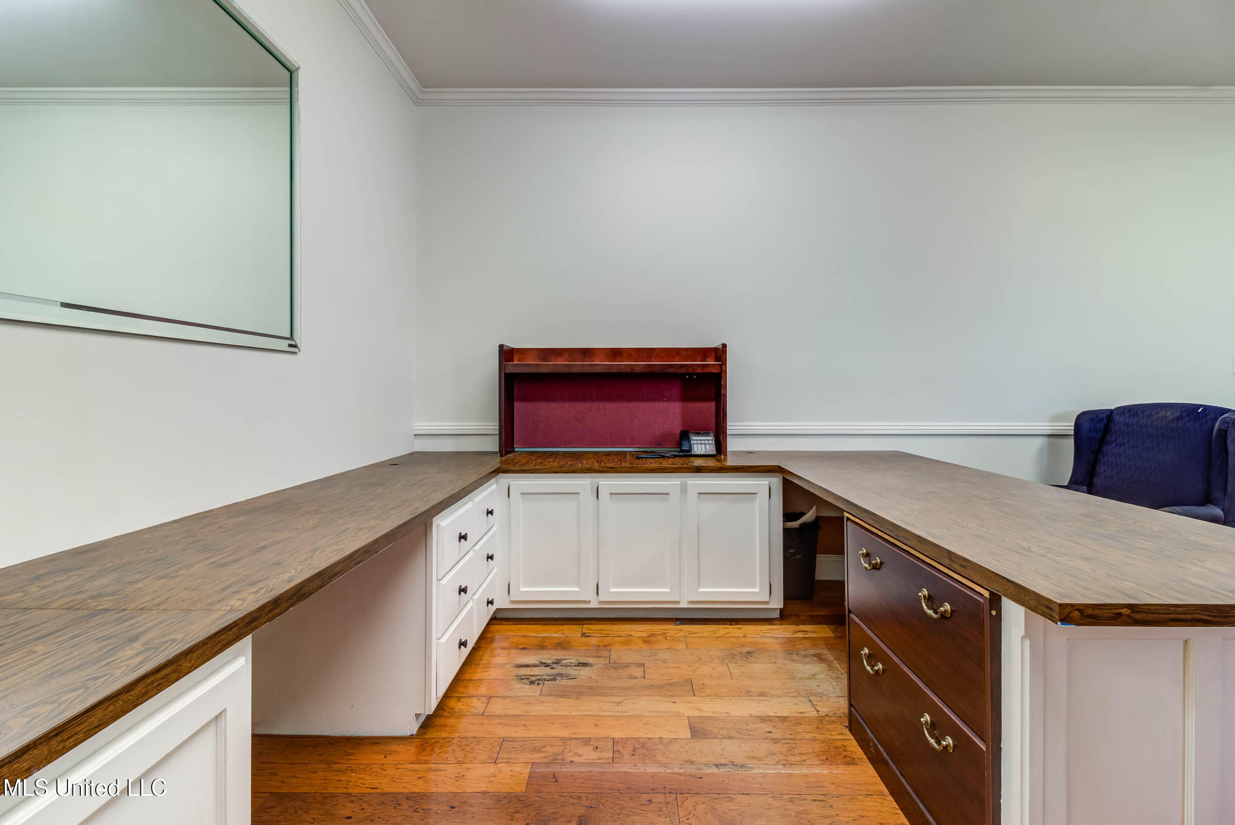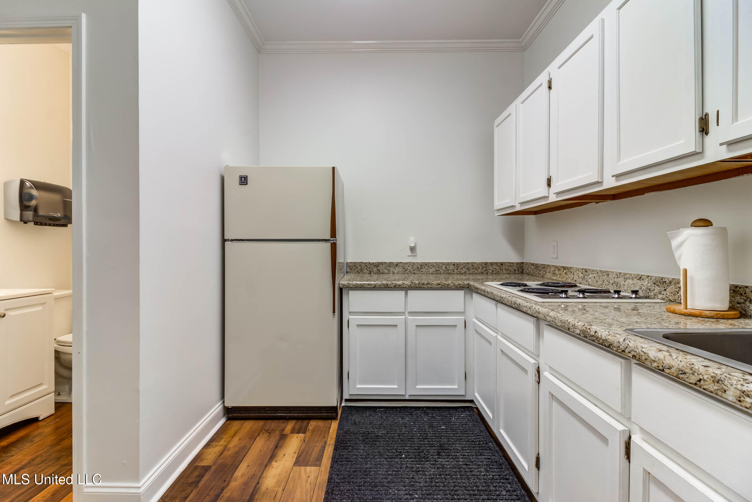Commercial building with office spaces, conference room, and kitchen.