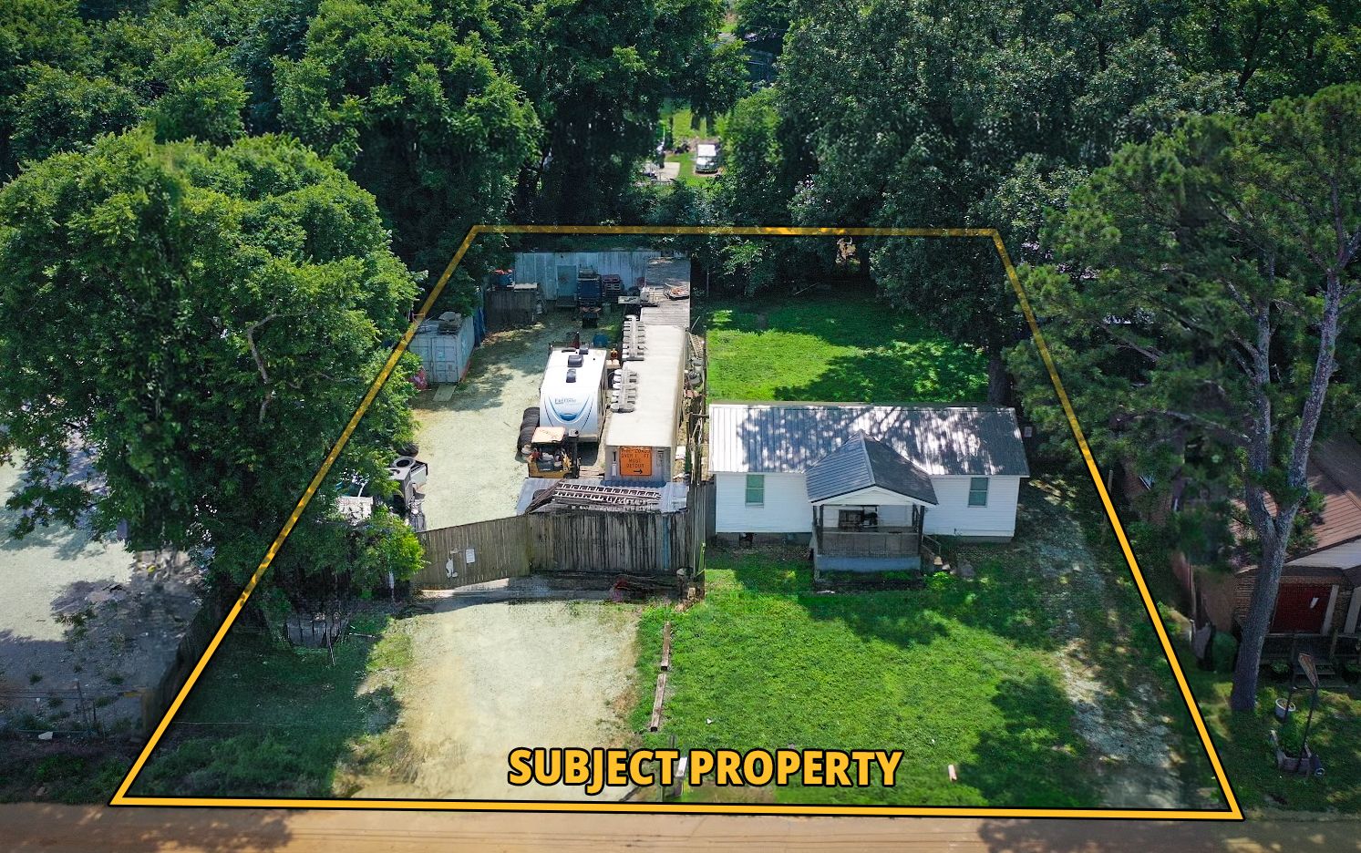 Recently renovated office space with fenced yard and storage containers.