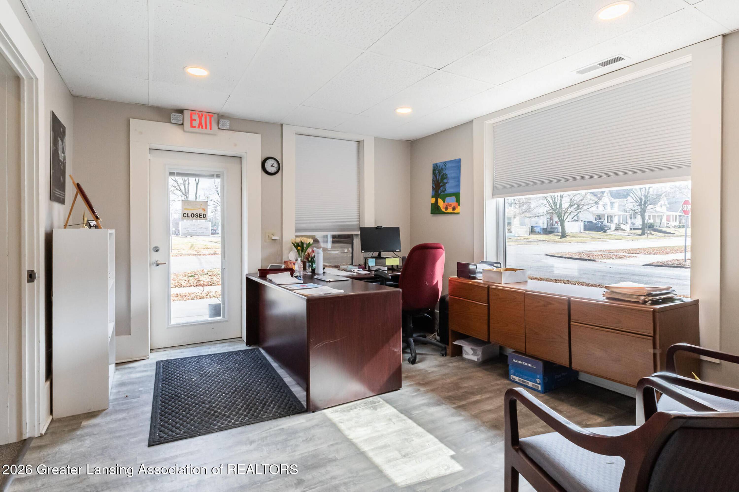Remodeled firehouse with office and residential units for sale.