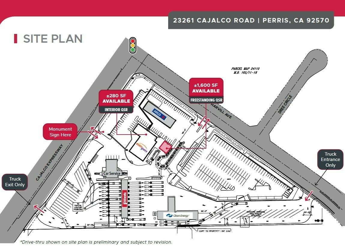 Freestanding and interior QSR spaces available with ample truck parking.