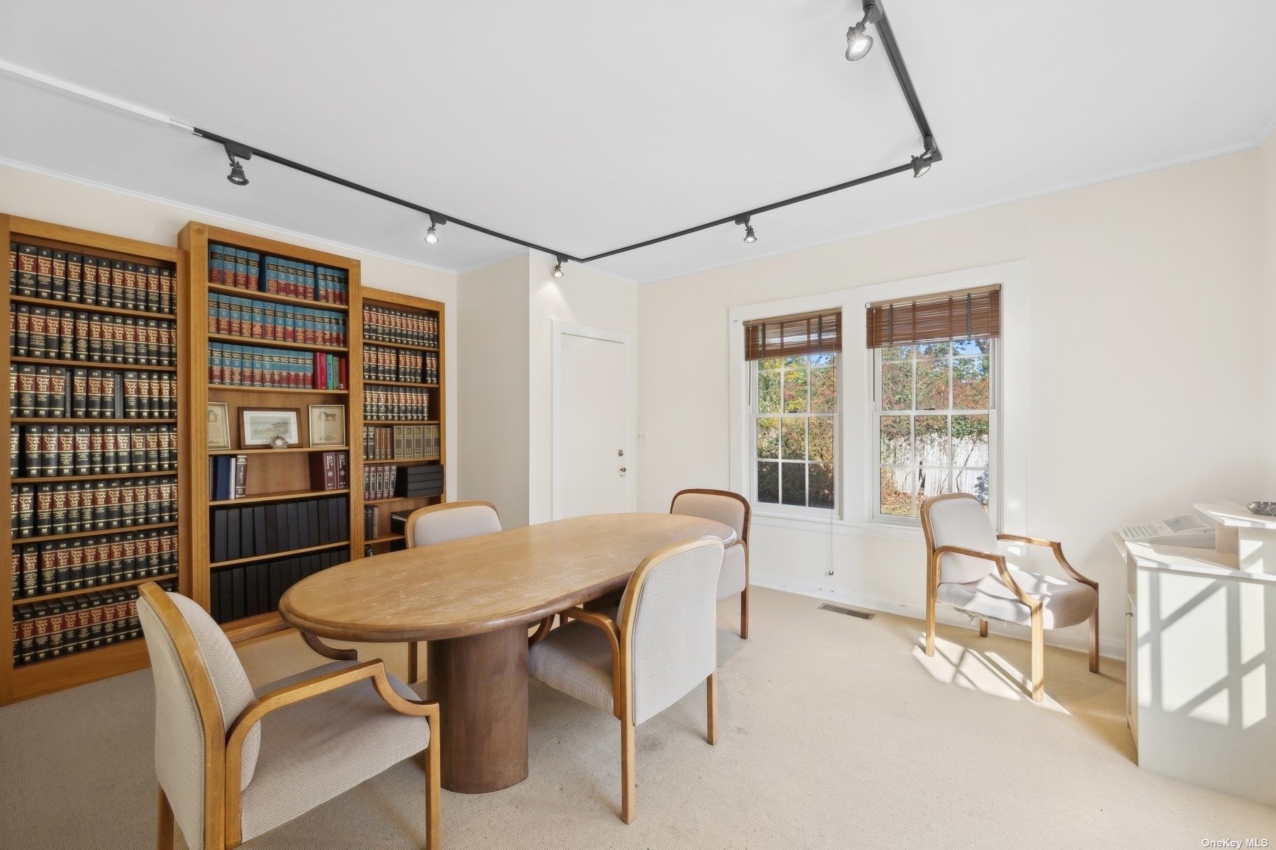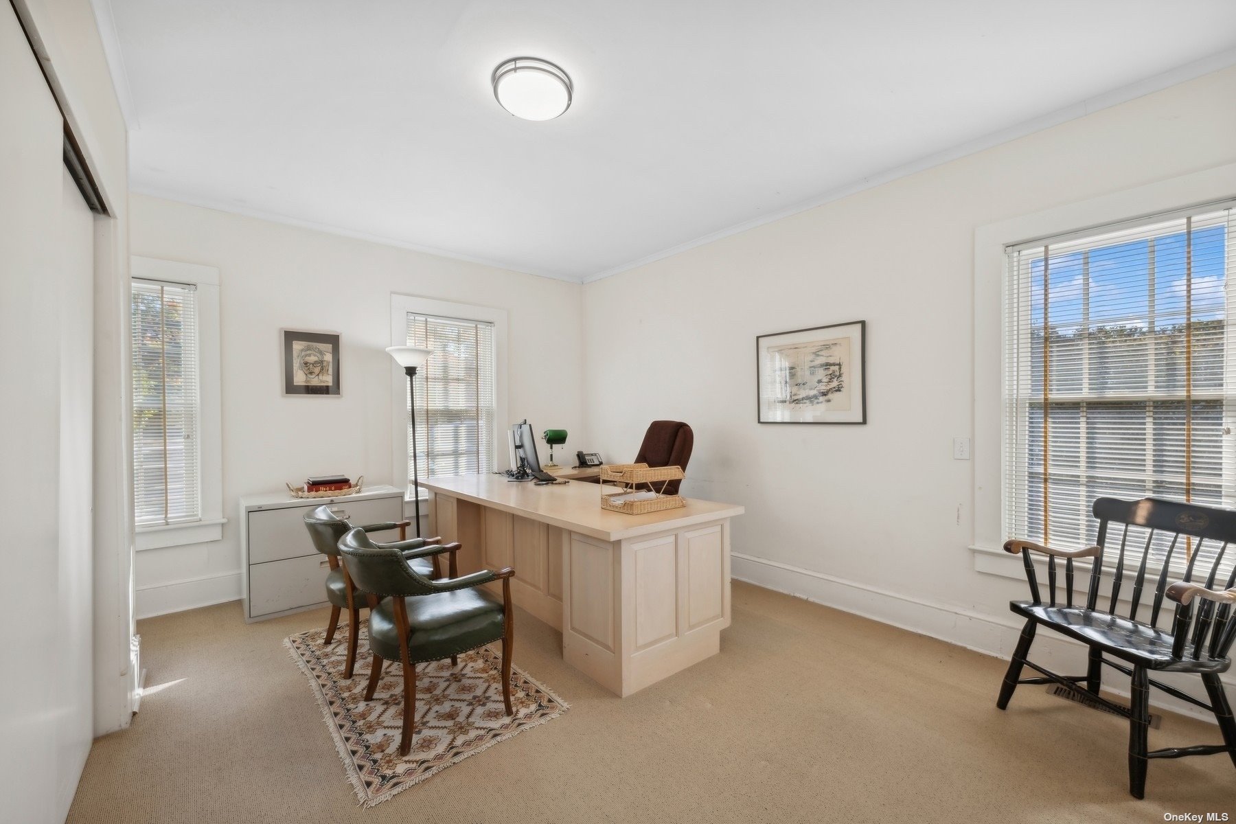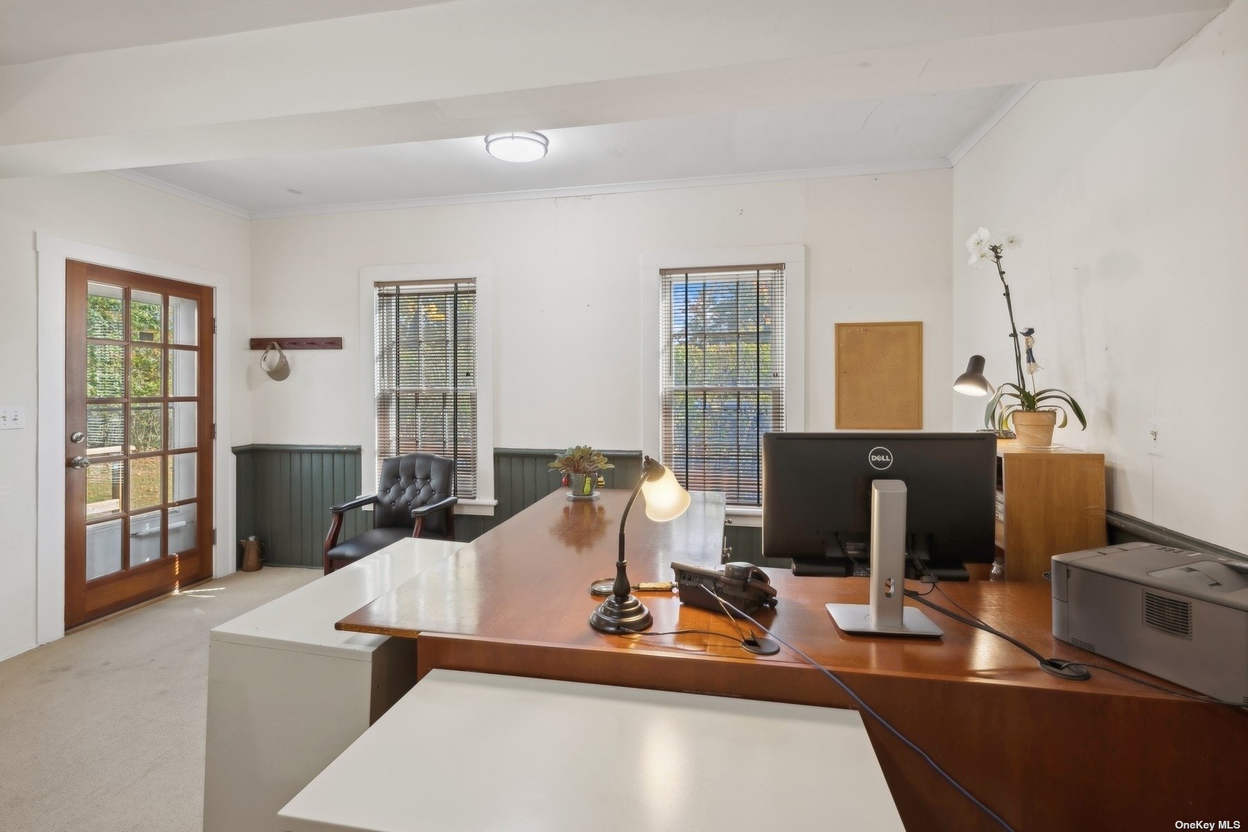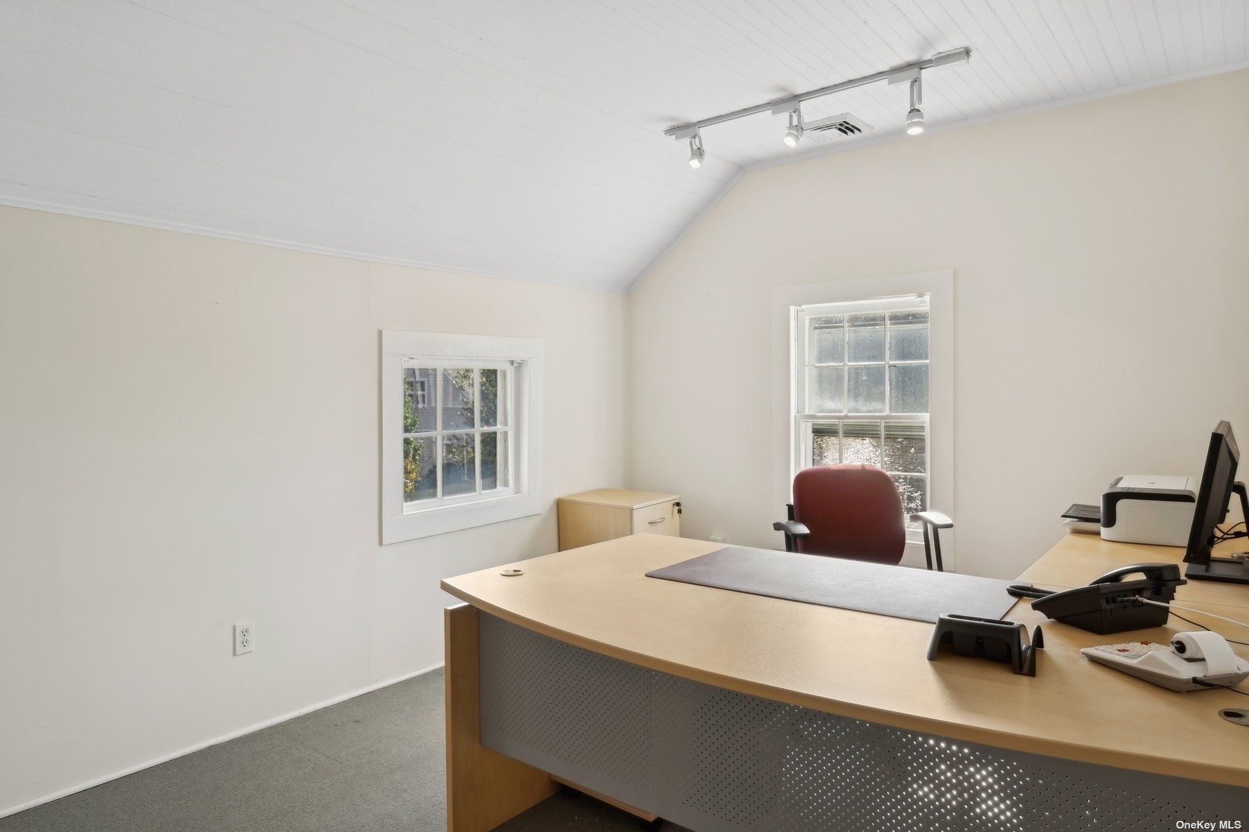 Two-story office building with basement and ample parking.