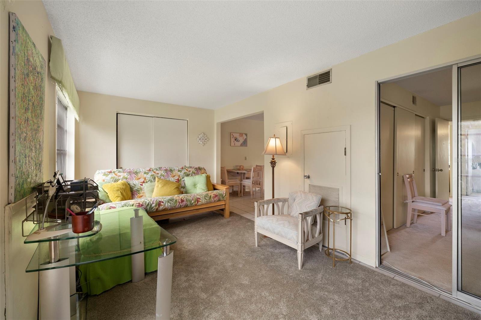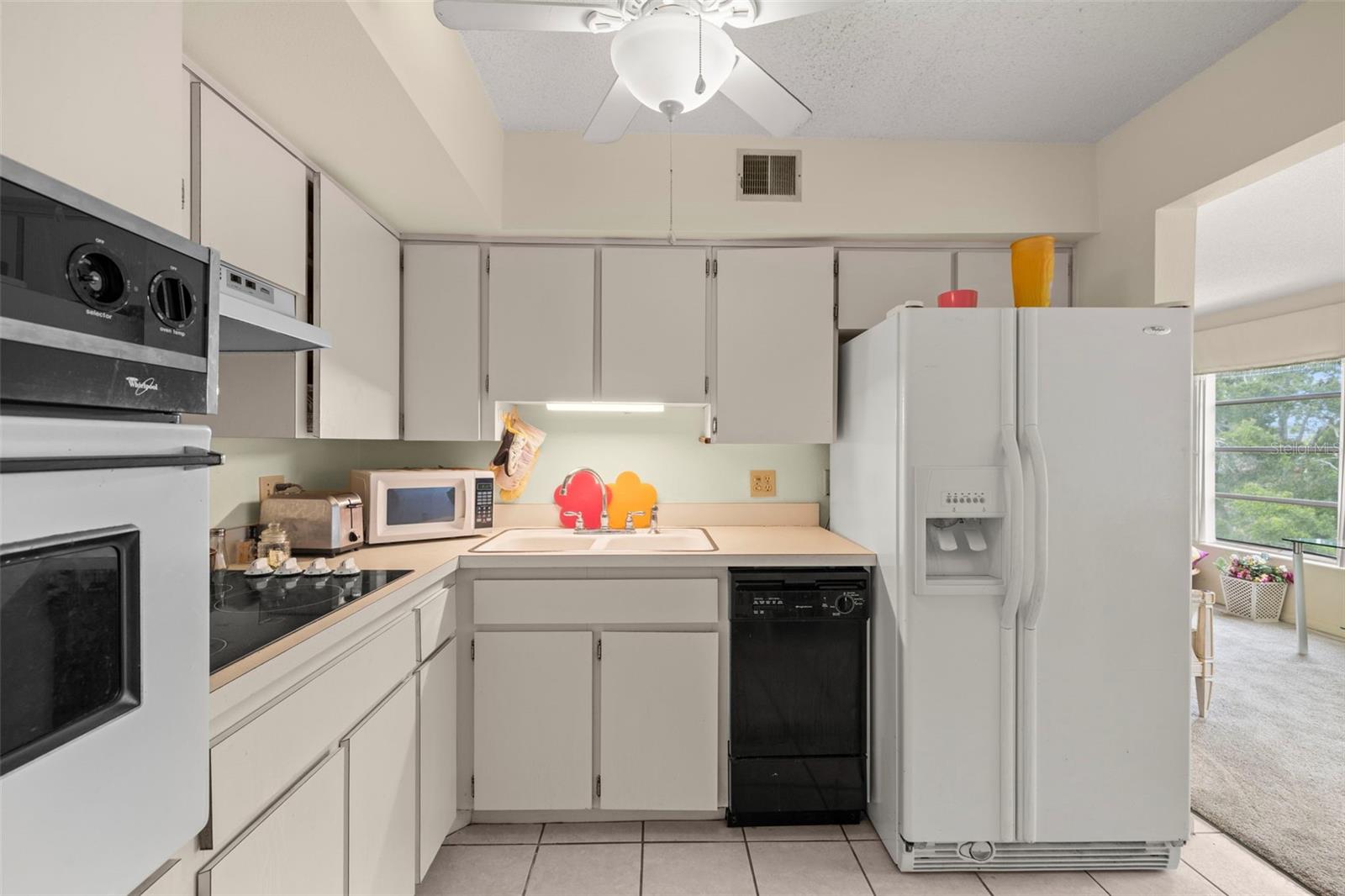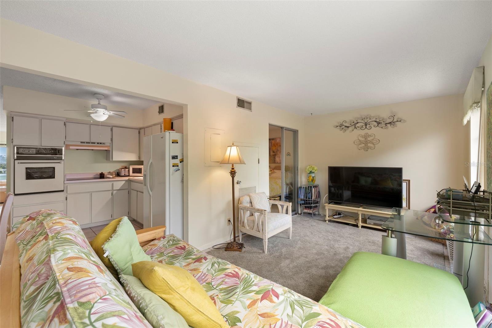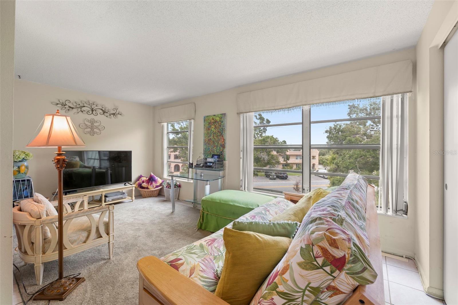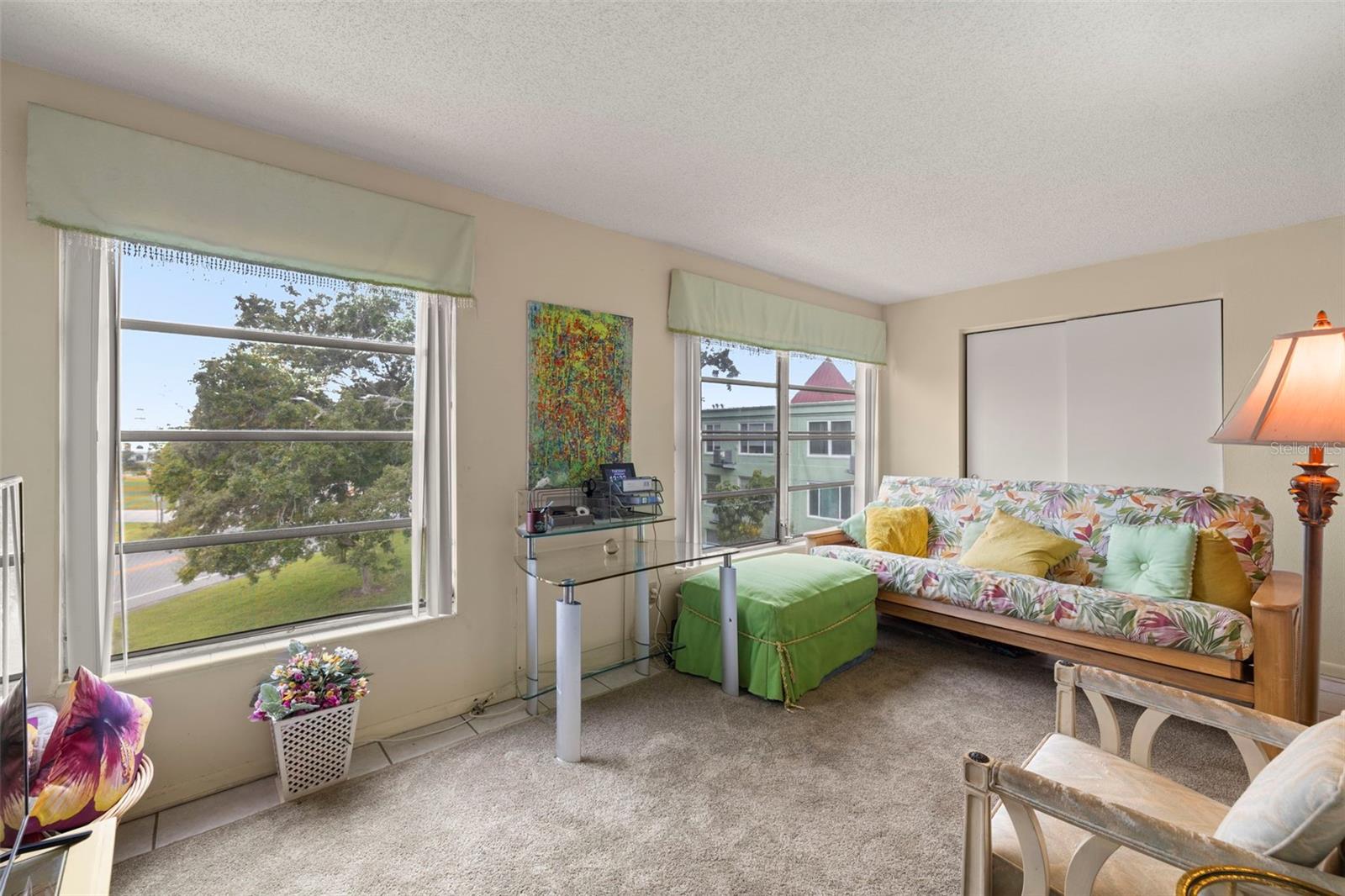 Two-bedroom condo in active 55+ community with many amenities.