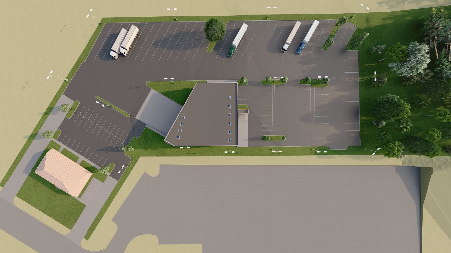 5-acre truck terminal with office, parking, and industrial zoning.