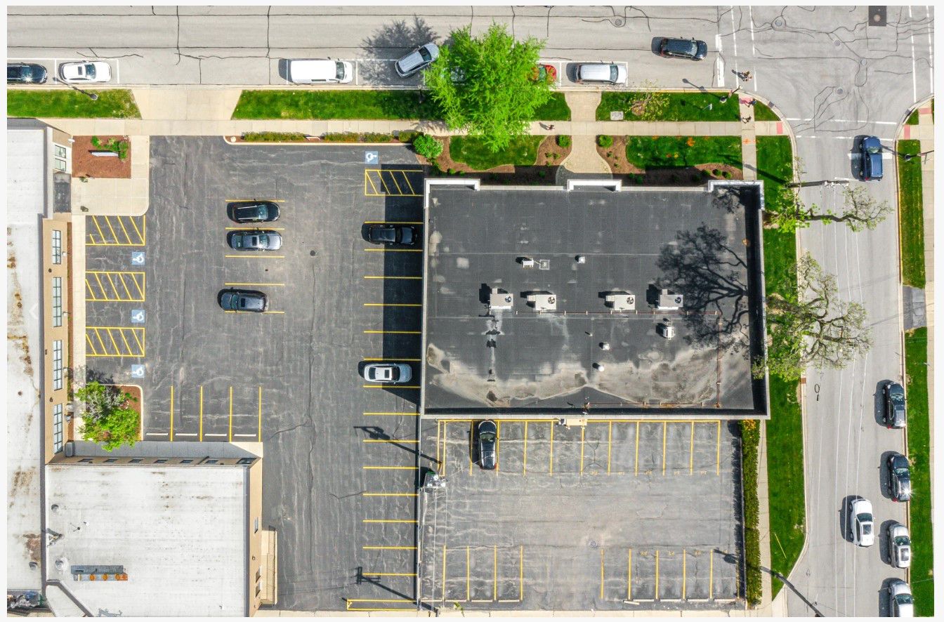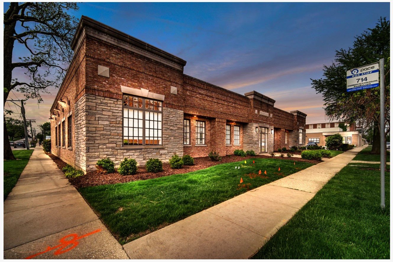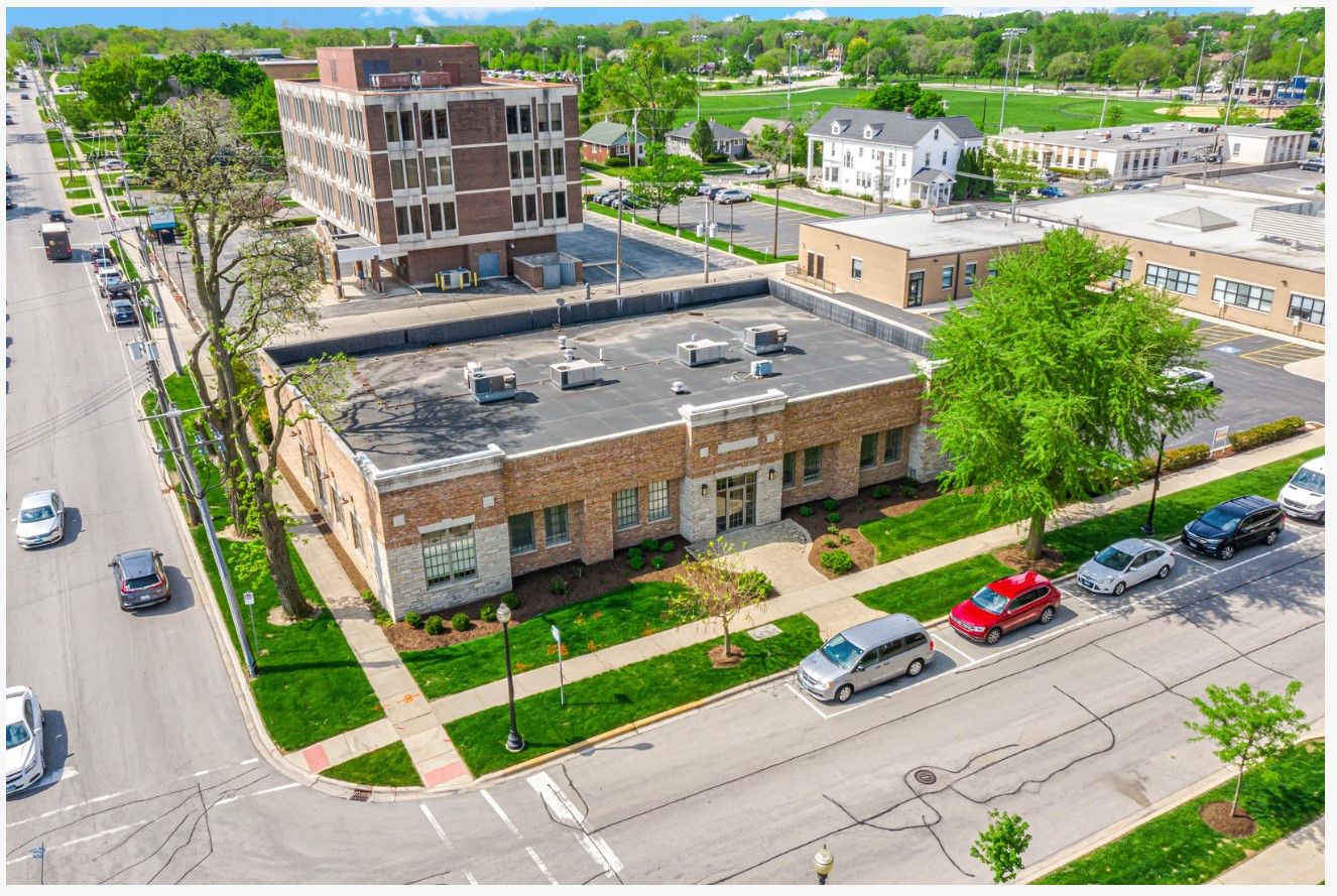 Standalone office building near Metra with ample parking.