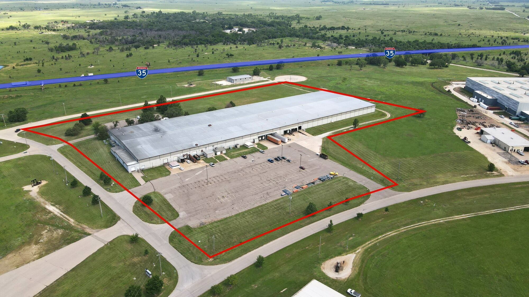This 204,855-square-foot warehouse is positioned within El Dorado’s established industrial corridor, offering a prime opportunity for businesses seeking a well-equipped and strategically located facility. Situated on a 16.8-acre lot zoned I-1 (Light Industrial), the property is designed to accommodate a wide range of industrial and logistical operations. The site offers immediate access to major transportation routes, including U.S. Highway 54 and the Kansas Turnpike (I-35), facilitating efficient regional and national distribution. Its proximity to Kansas Highways 254 and 196 further enhances connectivity, making it an ideal location for businesses requiring robust transportation infrastructure. The property's visibility from I-35 and closeness to Union Pacific rail lines offer potential for rail service integration, further expanding logistical capabilities. The warehouse features 14 dock high doors, 1 drive-in door, and a ceiling height of 20' to 25'. It is equipped with a 2,000 Amp electrical system and is fully sprinklered. Ample parking is available.