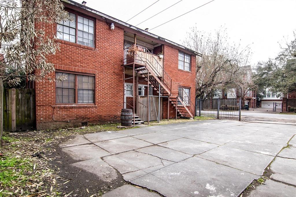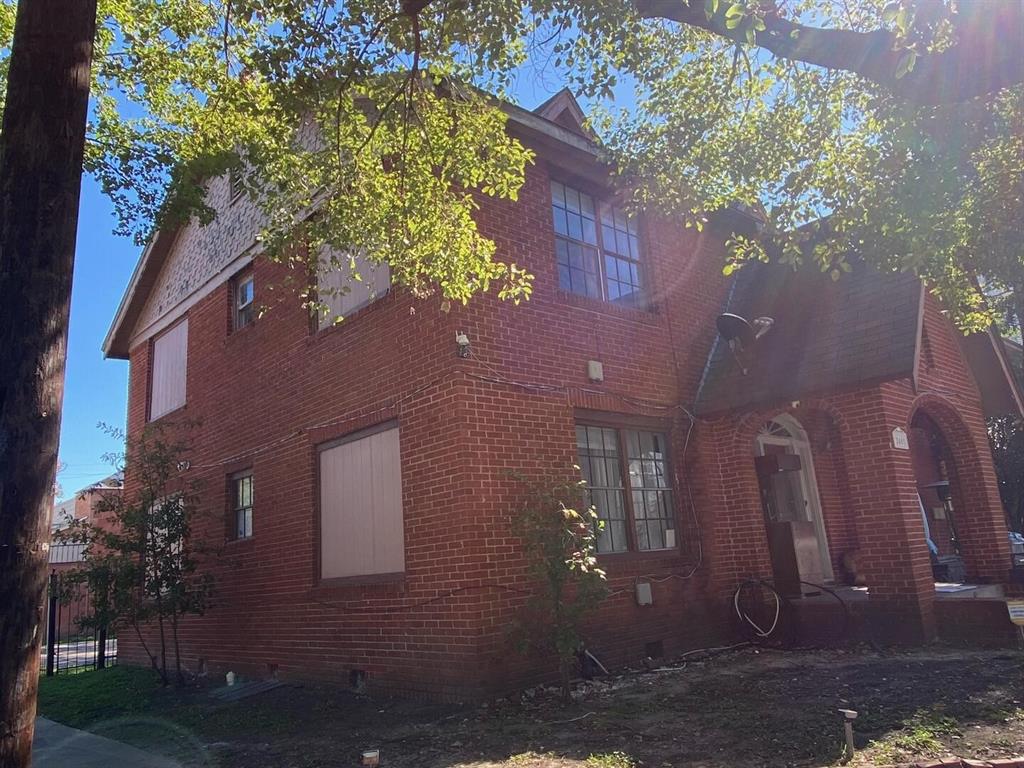 Two-story brick fourplex with income potential and development possibilities.