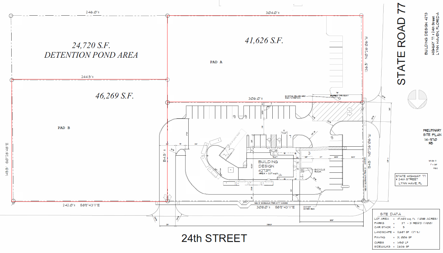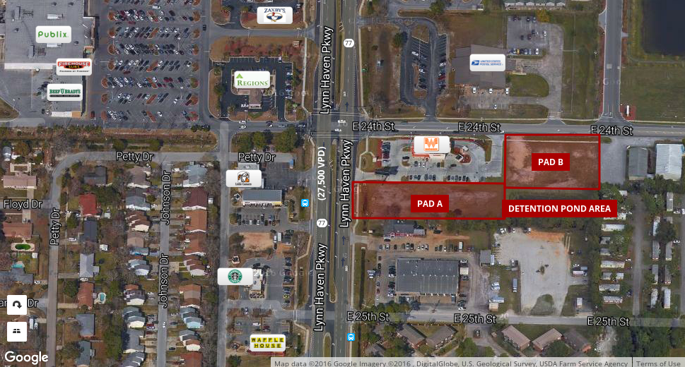 Highly visible pad site near retailers and high-traffic areas.