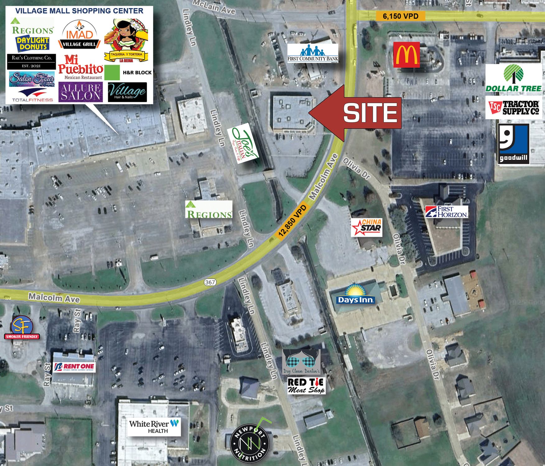 13,020 SF retail building with drive-thru and ample parking.