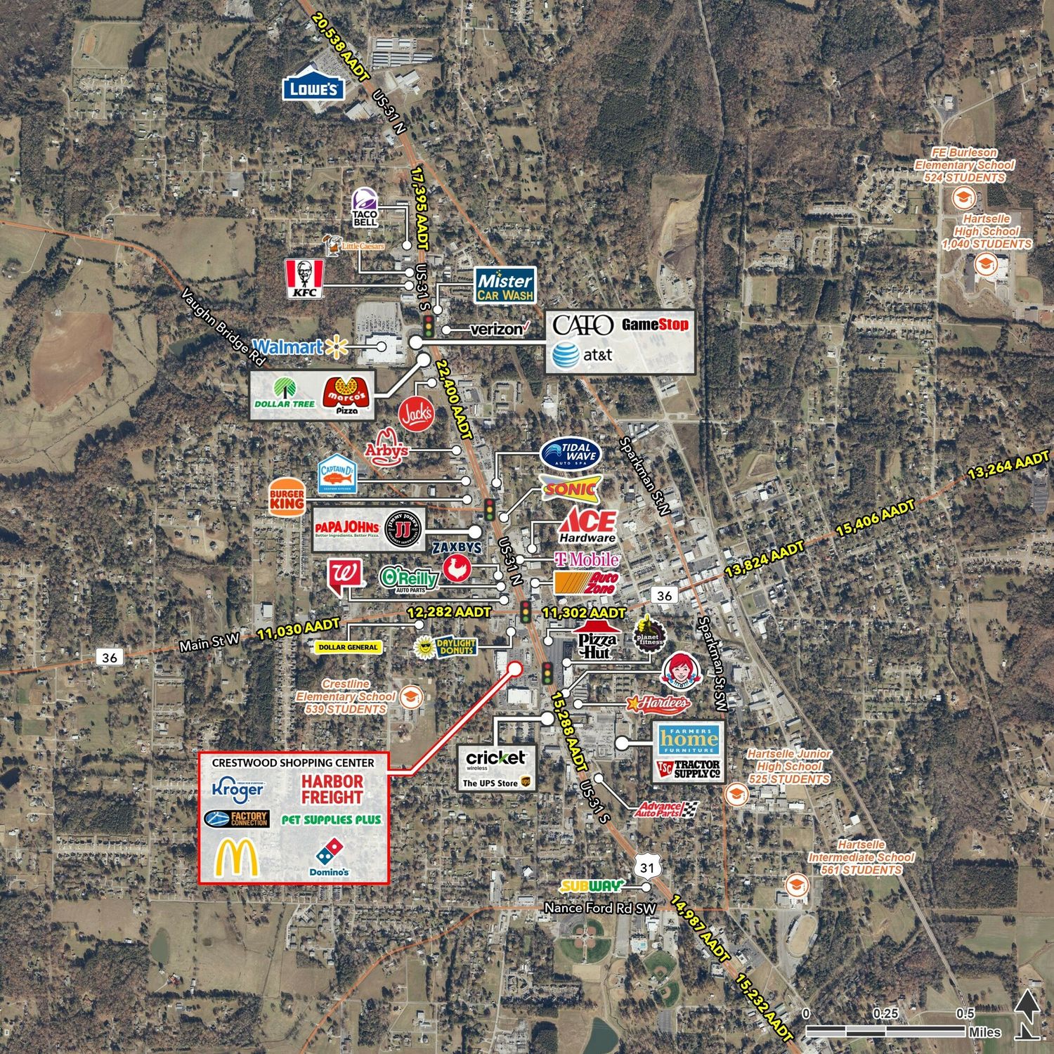 Retail spaces available in Hartselle's busiest retail center.