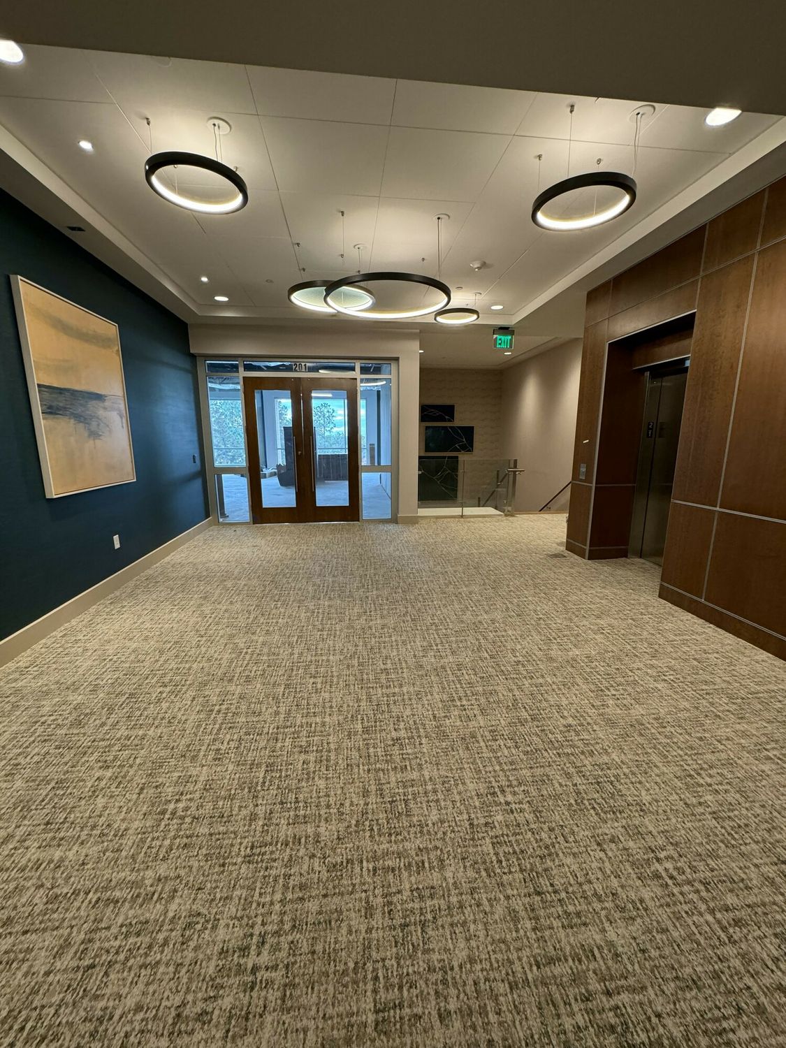 Second-floor office space available in a multi-tenant building.