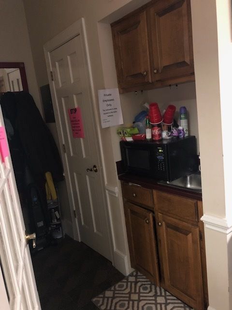 Office condo with reception, offices, kitchenette, and bathroom.