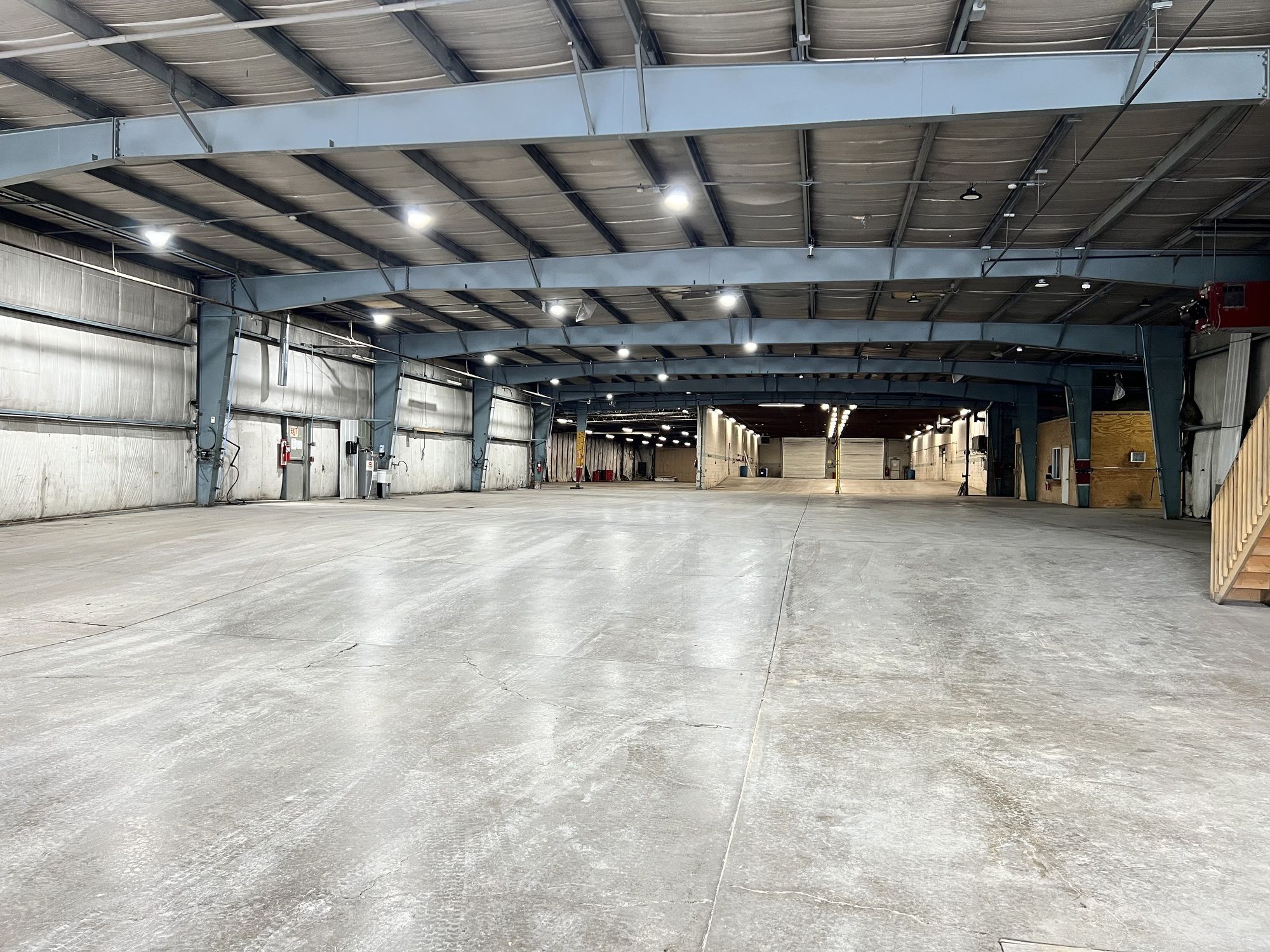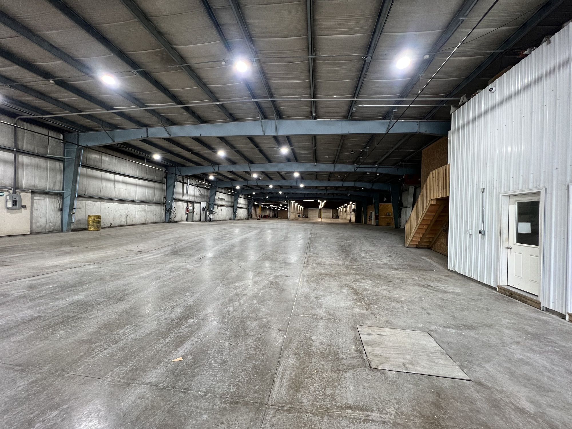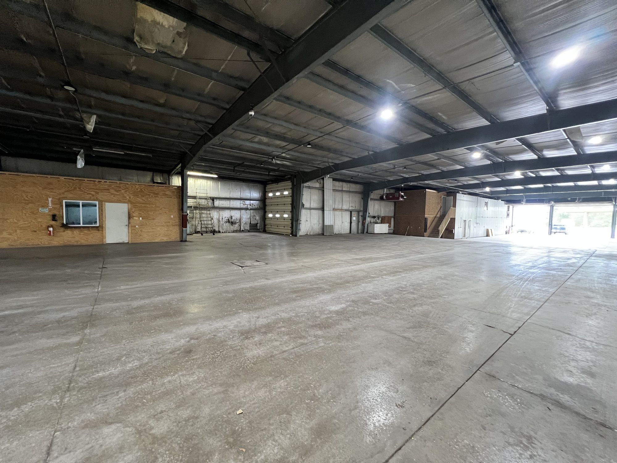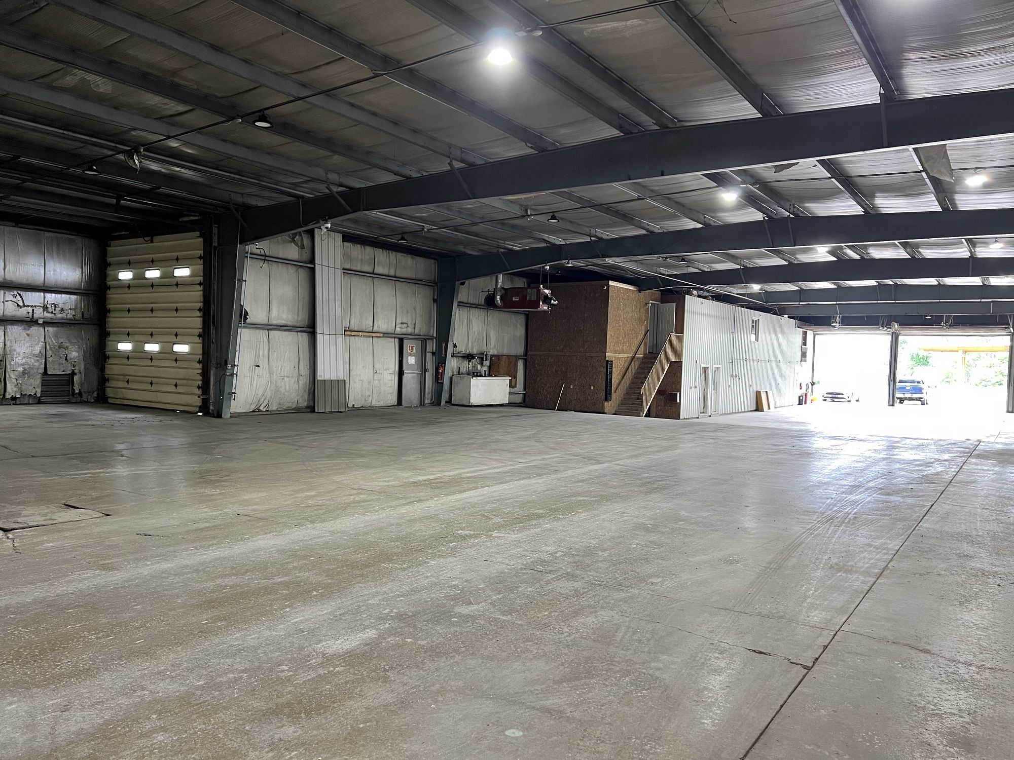 Industrial property with stabilized land, drive-in doors, and office space.