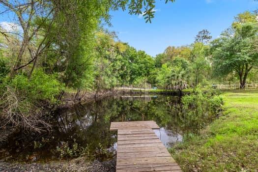 Picturesque five-acre retreat with pond, creek, and ample amenities.