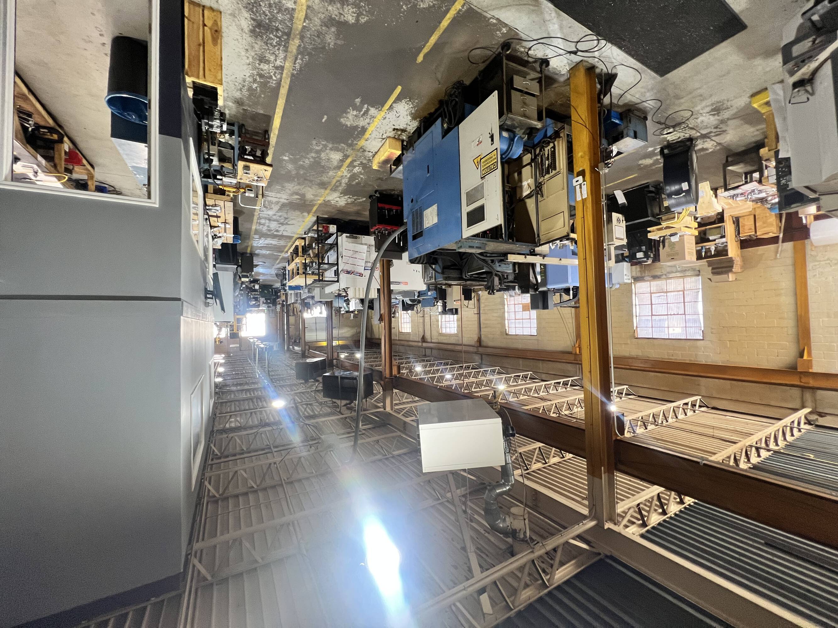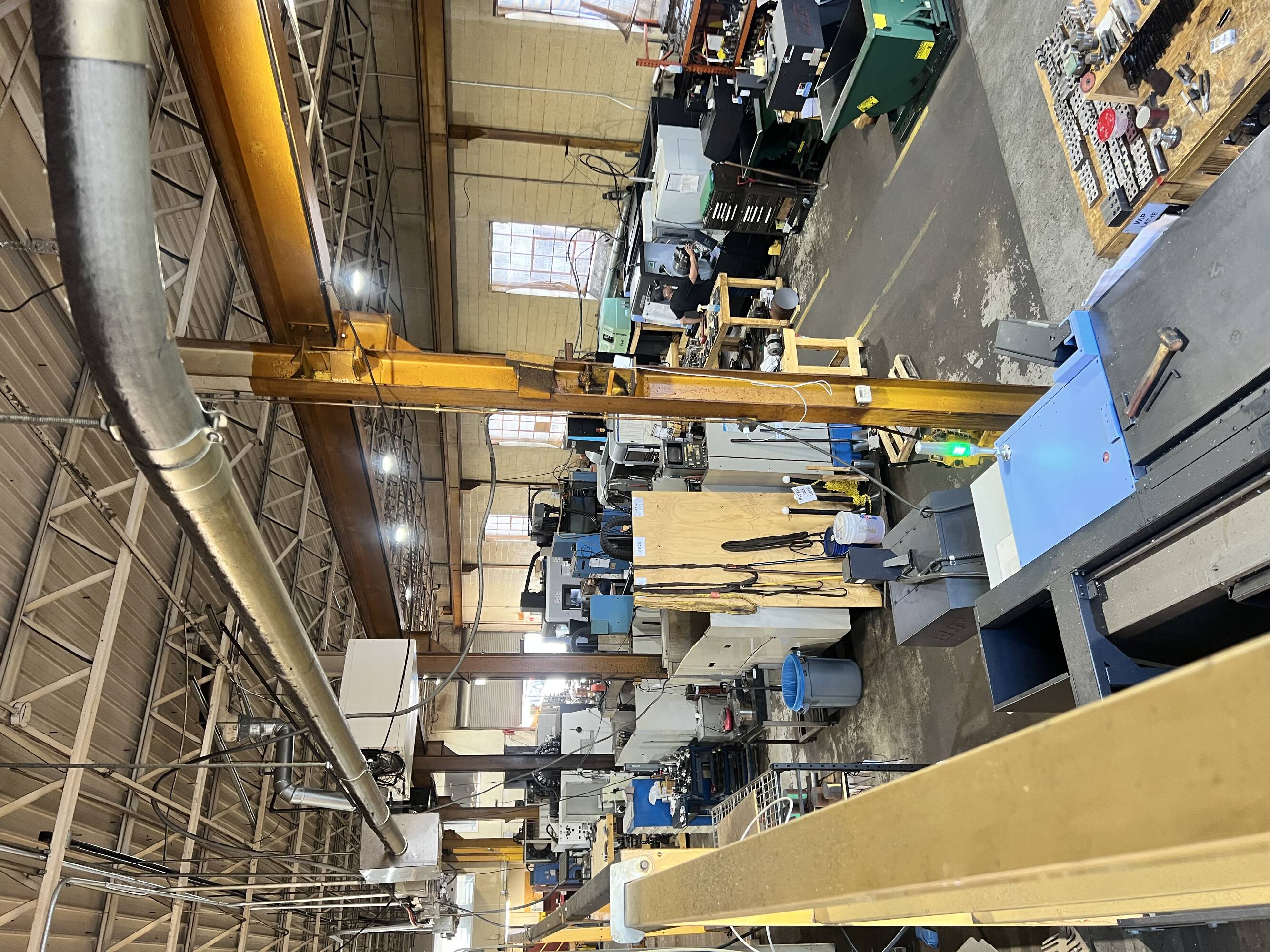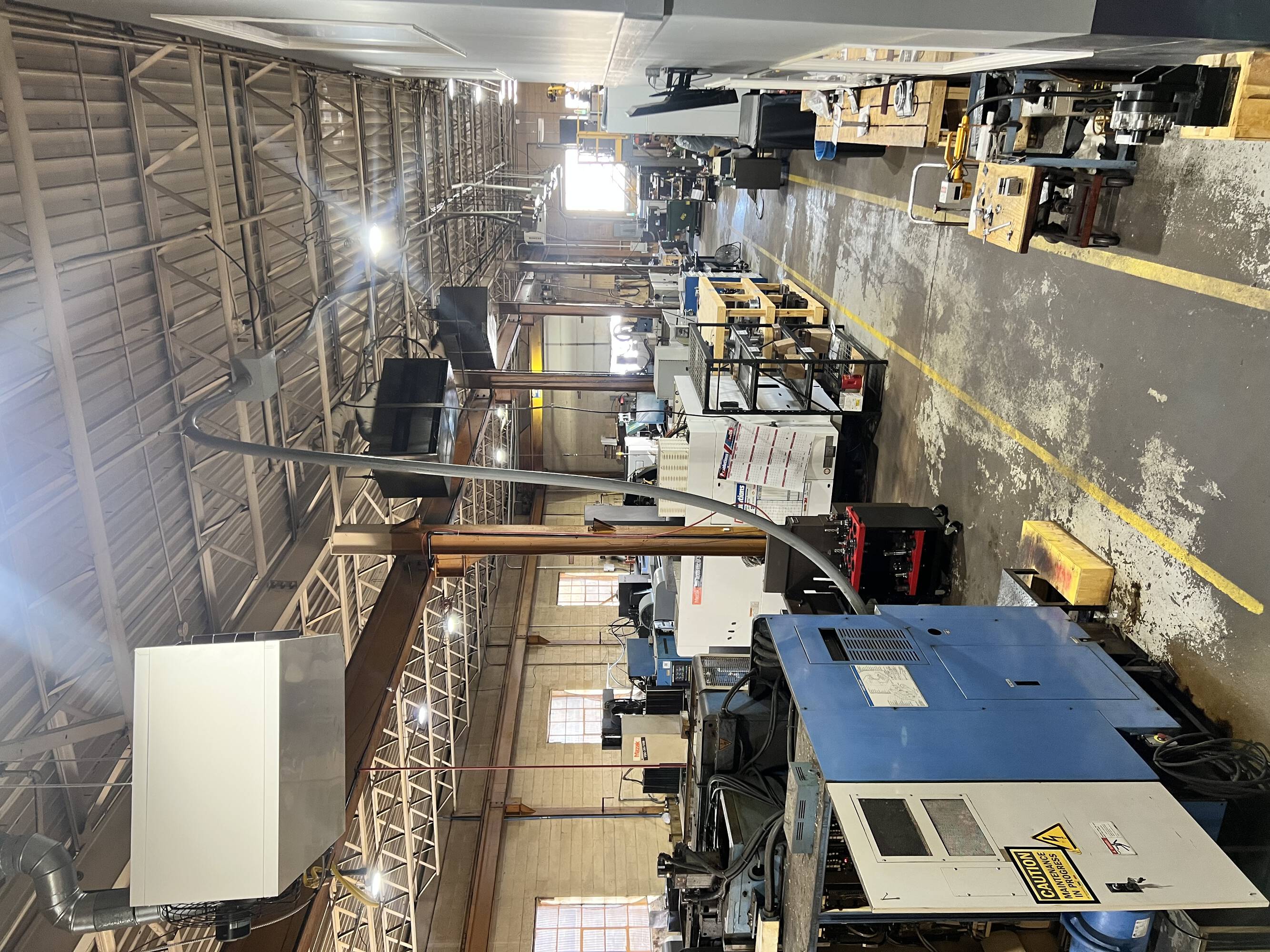 Two-building warehouse property featuring crane, office, and high ceilings.
