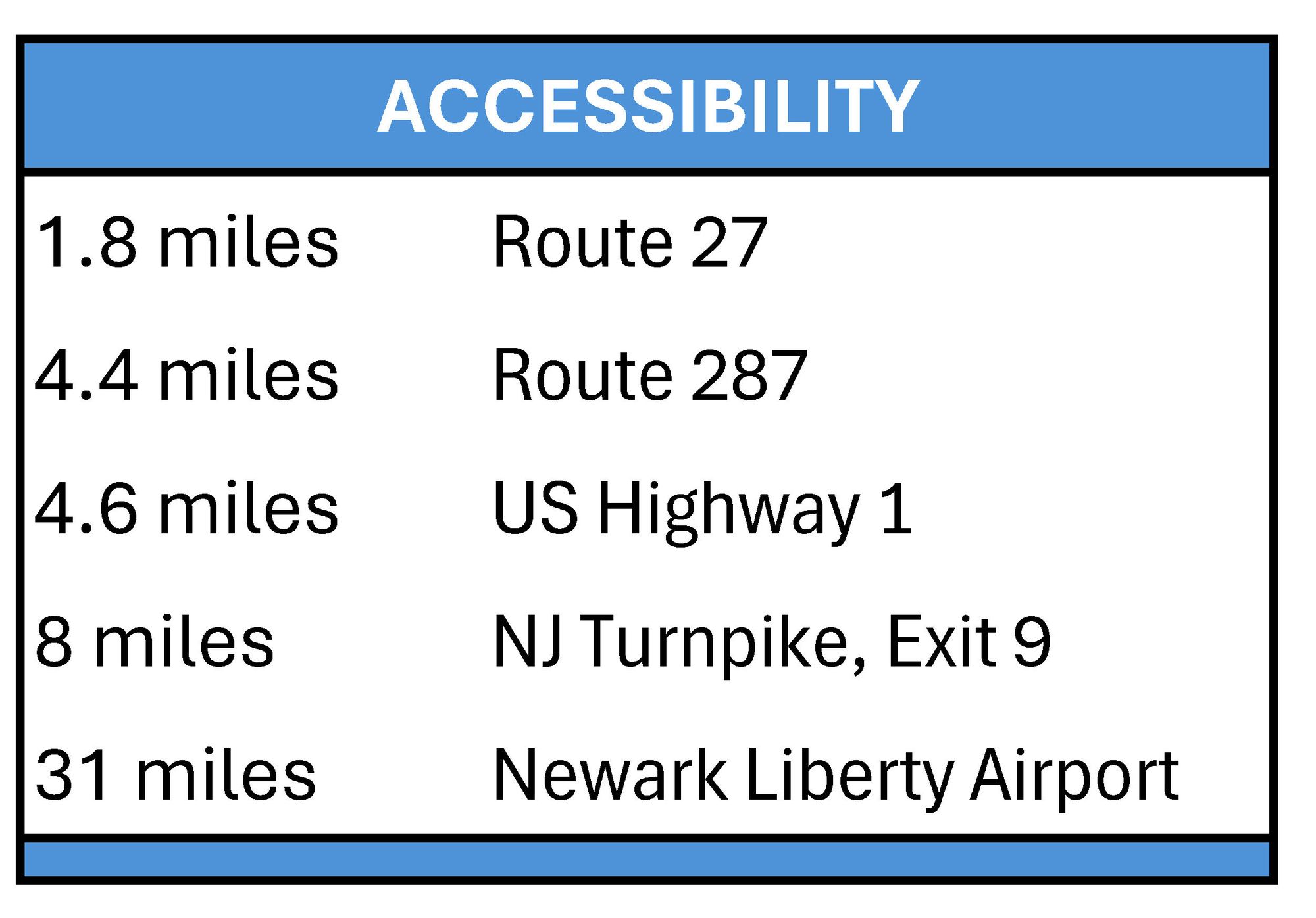 This property features: Centrally located in Somerset County with easy access to I‑287, Route 27, and the NJ Turnpike.; Zoned B‑I (formerly M‑2) allowing for logistics, light manufacturing, warehousing, and distribution.; Short term lease options available (1‑2 years).