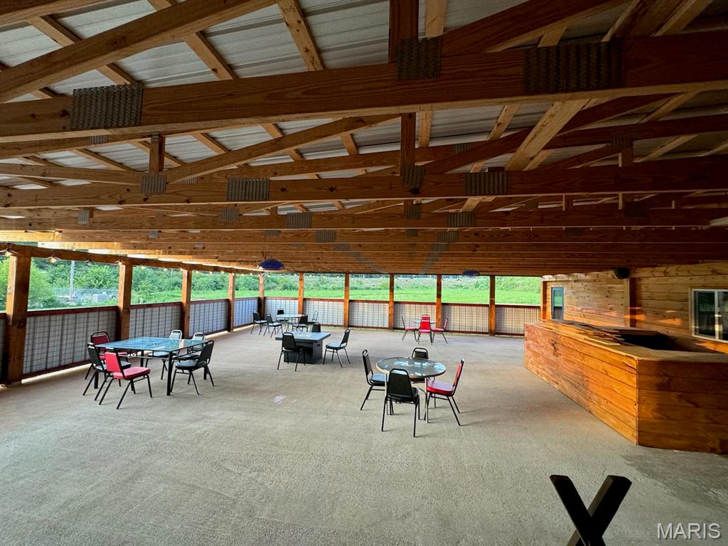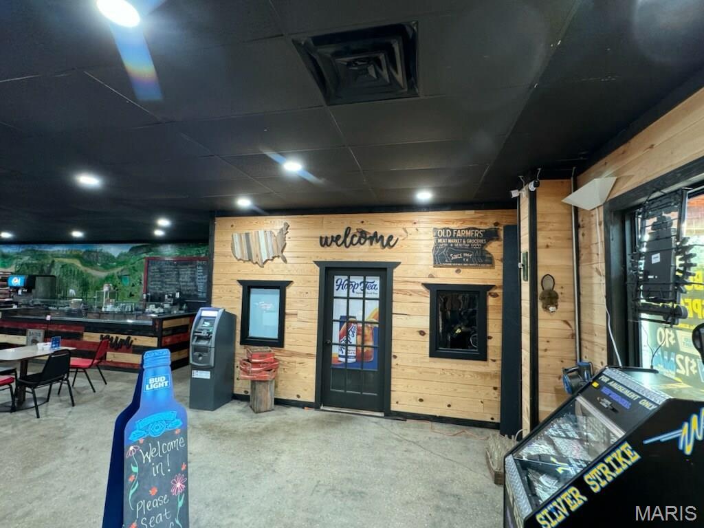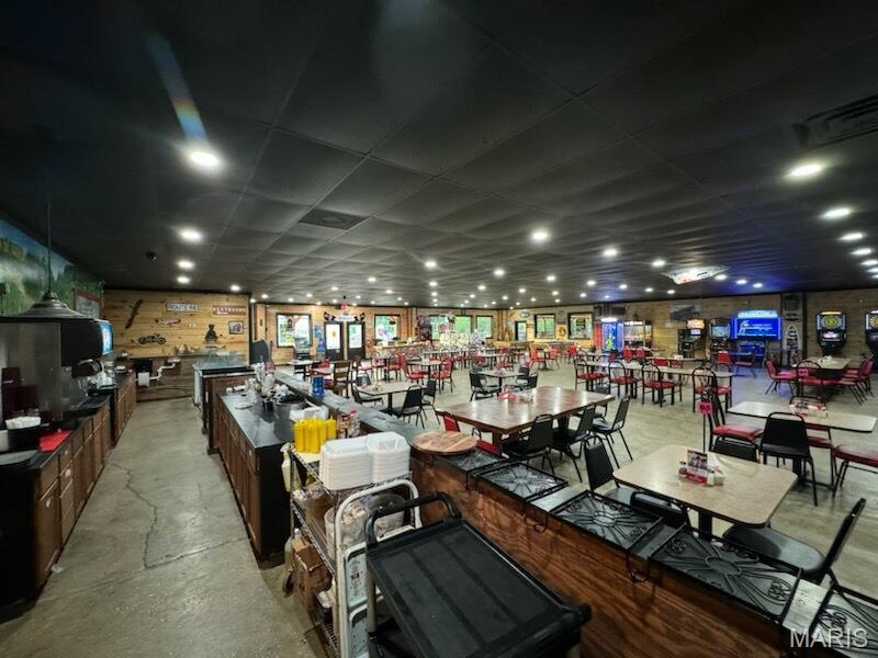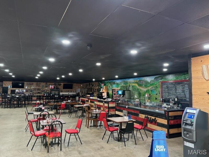 Renovated commercial building with restaurant, bar, and entertainment space.