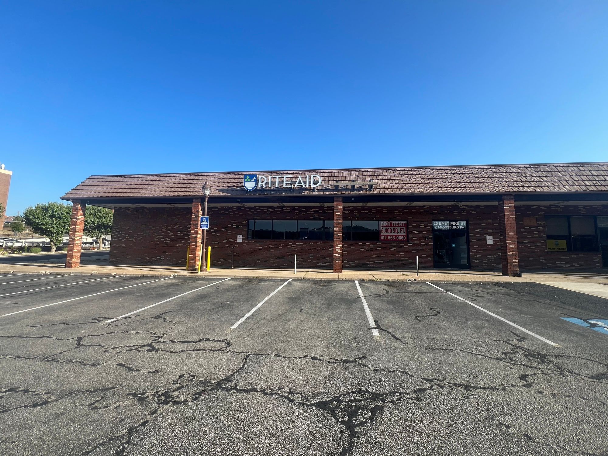 Located at 25 East Pike Street in downtown Canonsburg, PA, this retail space offers 6,400 square feet of high-visibility space. The end-cap unit features excellent frontage directly across from the Canonsburg Borough Building. Previously occupied by Rite Aid and equipped with a built-in pharmacy, the space is suitable for medical, retail, or service-oriented businesses. Situated between Central Avenue and Greenside Avenue, the property benefits from substantial foot traffic and ample on-site parking. The location provides convenient access to I-79, positioning it minutes from Southpointe and approximately 20 miles from downtown Pittsburgh. The property is near a signalized intersection and benefits from a strong community presence.