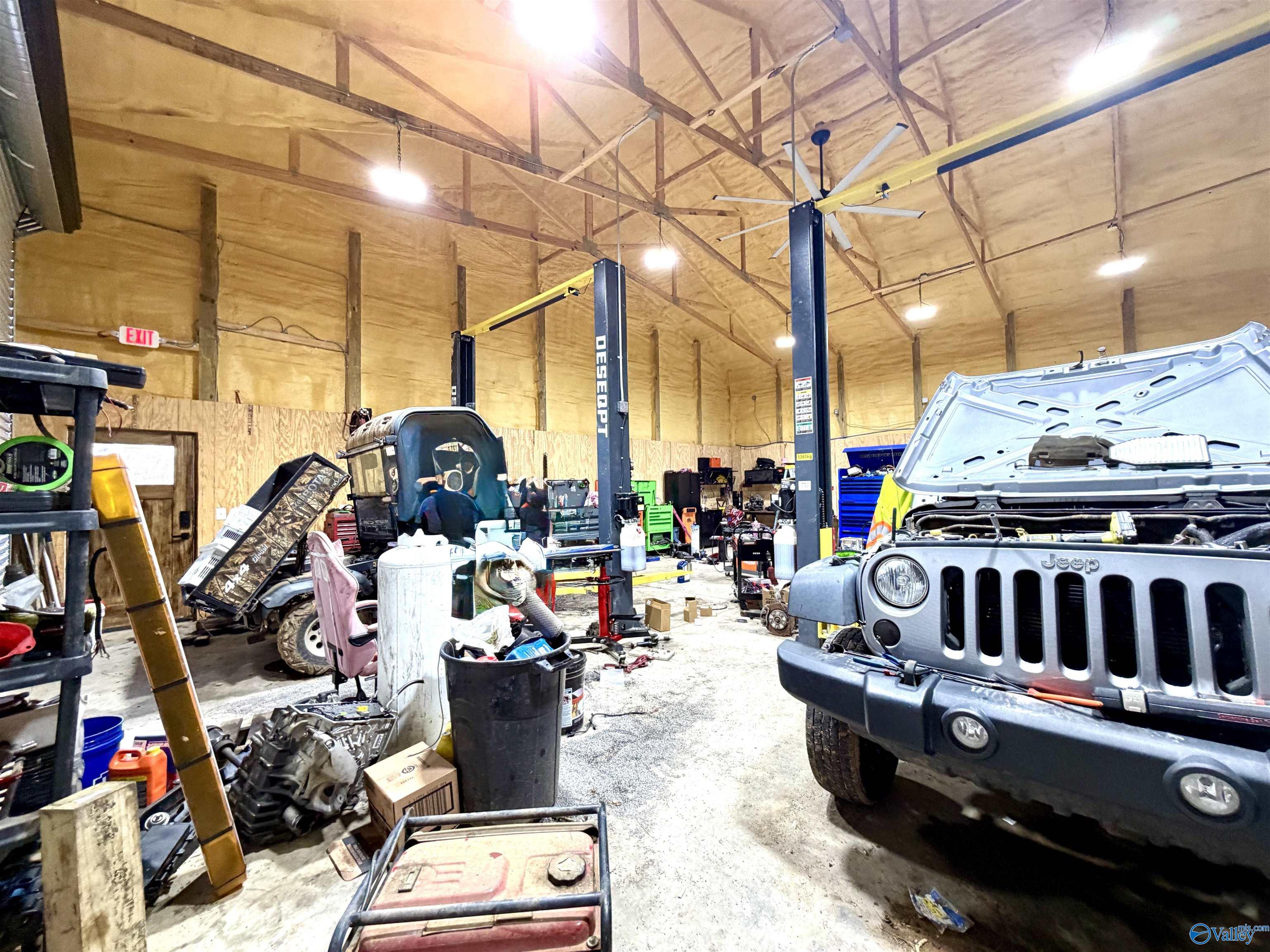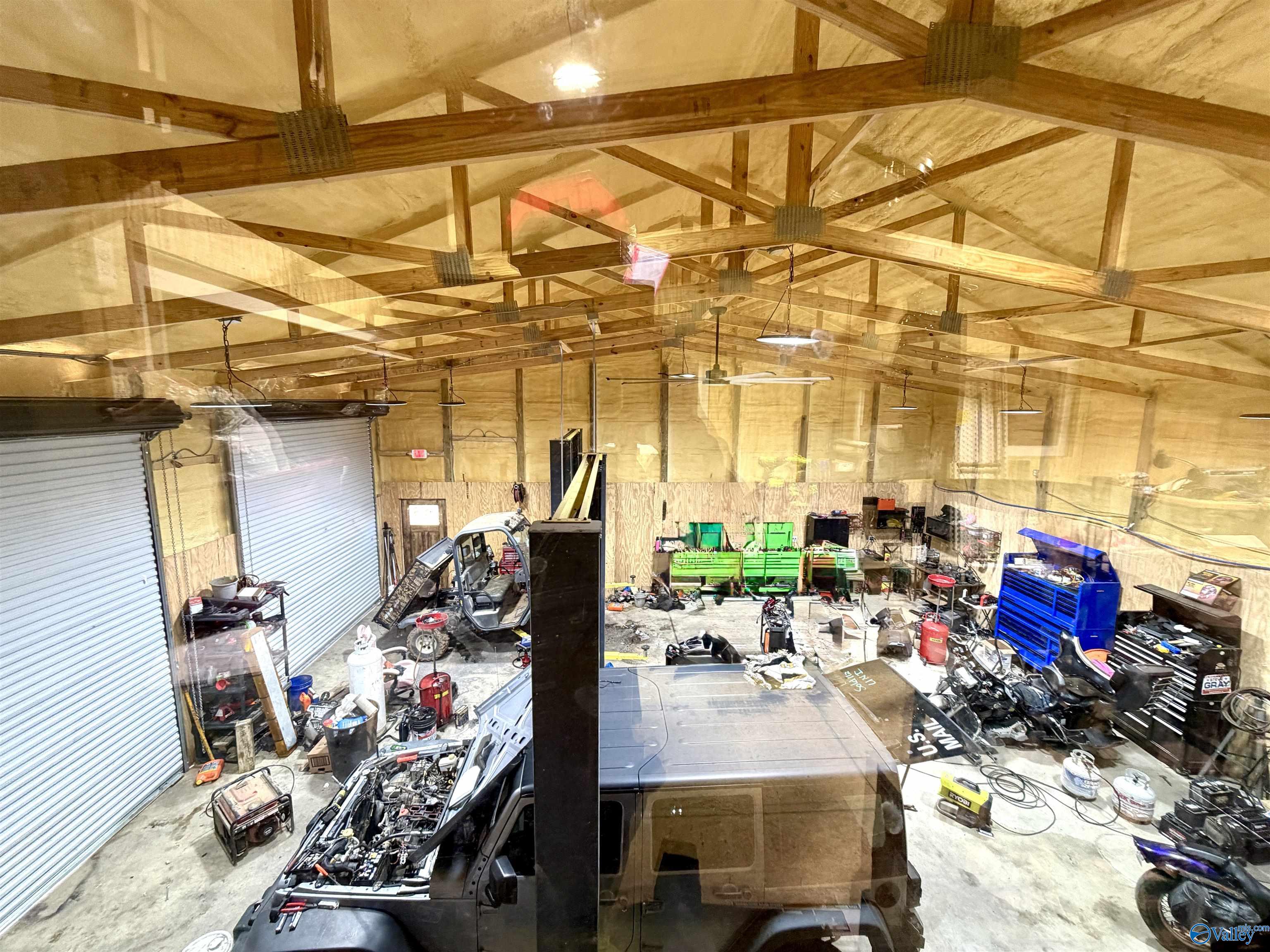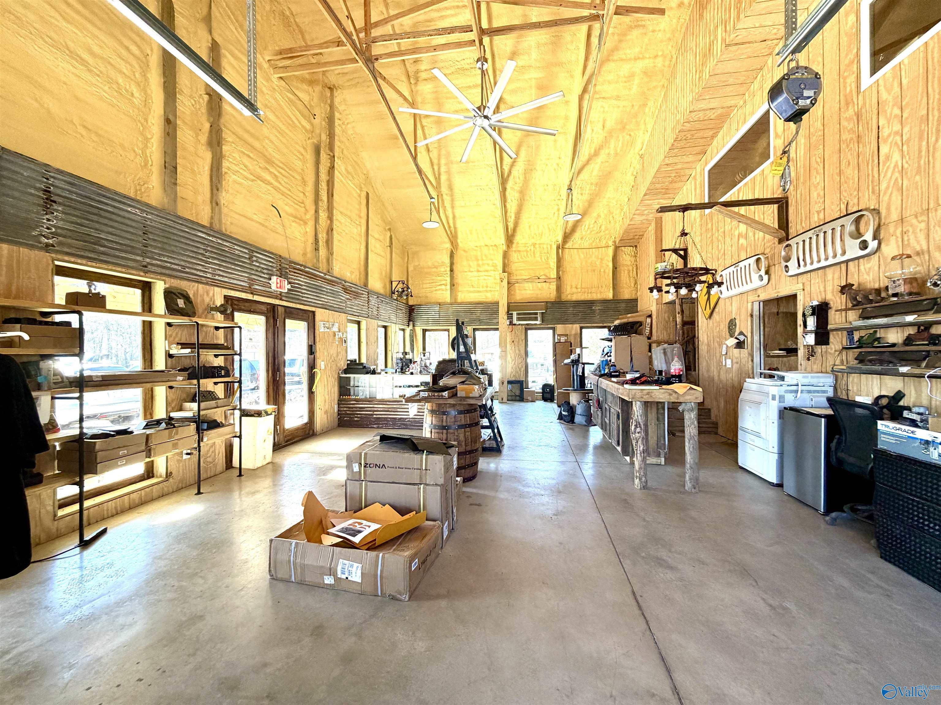 Two-story commercial building with road frontage and workshop space.