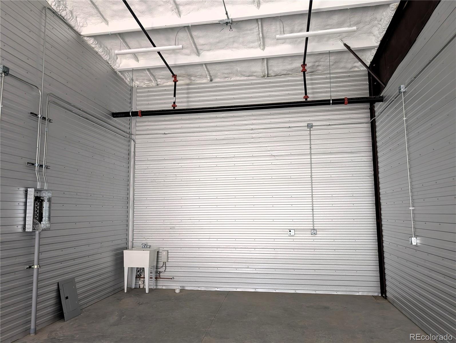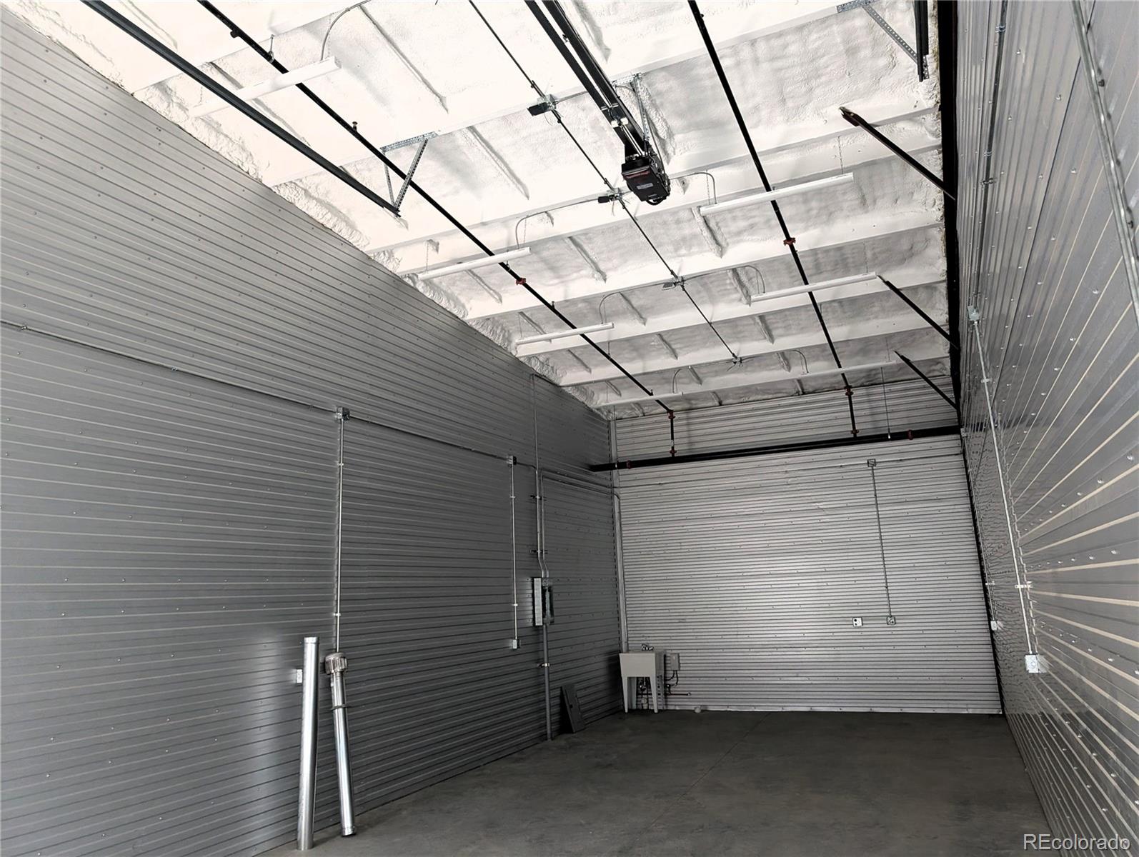 This newly constructed 810 square foot heated warehouse unit, available May 1, 2026, features 16 to 20-foot ceilings and a 15-foot high overhead garage door. It is suitable for large vehicle storage, workshop use, equipment or inventory storage, or small business operations within a secure, climate-controlled environment. The 18' x 45' unit includes a 12'x15' overhead door, a 36" man door entry, an epoxy floor, and a utility sink with hot and cold water. The space is equipped with 125-amp electrical service, fire sprinklers, and a furnace. The tall ceiling height allows for the installation of a mezzanine, car lift, or storage loft. The development is fully fenced with security gates and provides 24/7 tenant access, along with on-site restrooms and a vehicle wash station. Internet service is available. The development offers a secure, clean, professional environment suitable for personal or business use. The oversized door and 4000 PSI concrete floor accommodate a car lift, multiple cars, lifted trucks, SUVs, boats on trailers, car haulers, and Class B or Class C RVs. The space is also suitable for a workshop, fabrication area, inventory storage, tools and supplies storage, or combined vehicle and workspace layouts, with room for vehicles, work benches, fabrication tools, cabinetry, and seasonal storage. Potential uses include car enthusiast activities, contractor services, mobile service businesses, e-commerce inventory storage, 1-on-1 personal training, vehicle detailing, woodworking, fabrication, or equipment storage. Small business operations are permitted, provided they do not generate excessive noise, fumes, or high-volume customer traffic. Retail storefront activity is not permitted. Appointment-based visits are facilitated with guest parking inside the gates and additional street parking nearby. A cluster mailbox is located inside the gates for mail delivery. The gated development maintains a quiet, professional environment, offering a secure, flexible, and customizable space for storage, workspace, hobbies, or business operations.