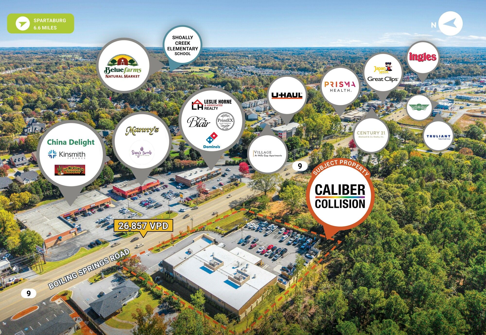 This property features: New 15‑year corporate‑guaranteed lease with Caliber Collision.; Absolute NNN lease structure.; Located in the rapidly growing Spartanburg MSA, near BMW's largest manufacturing plant.