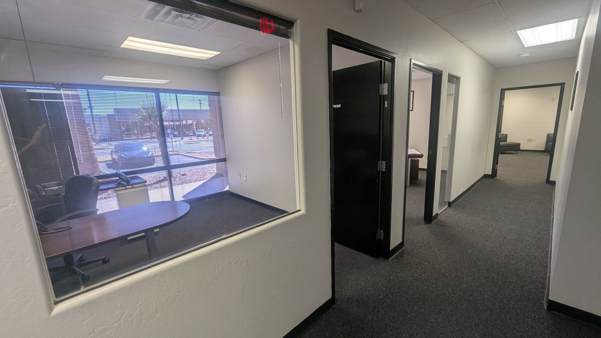 Office building with training rooms, flexible layout, and ample parking.