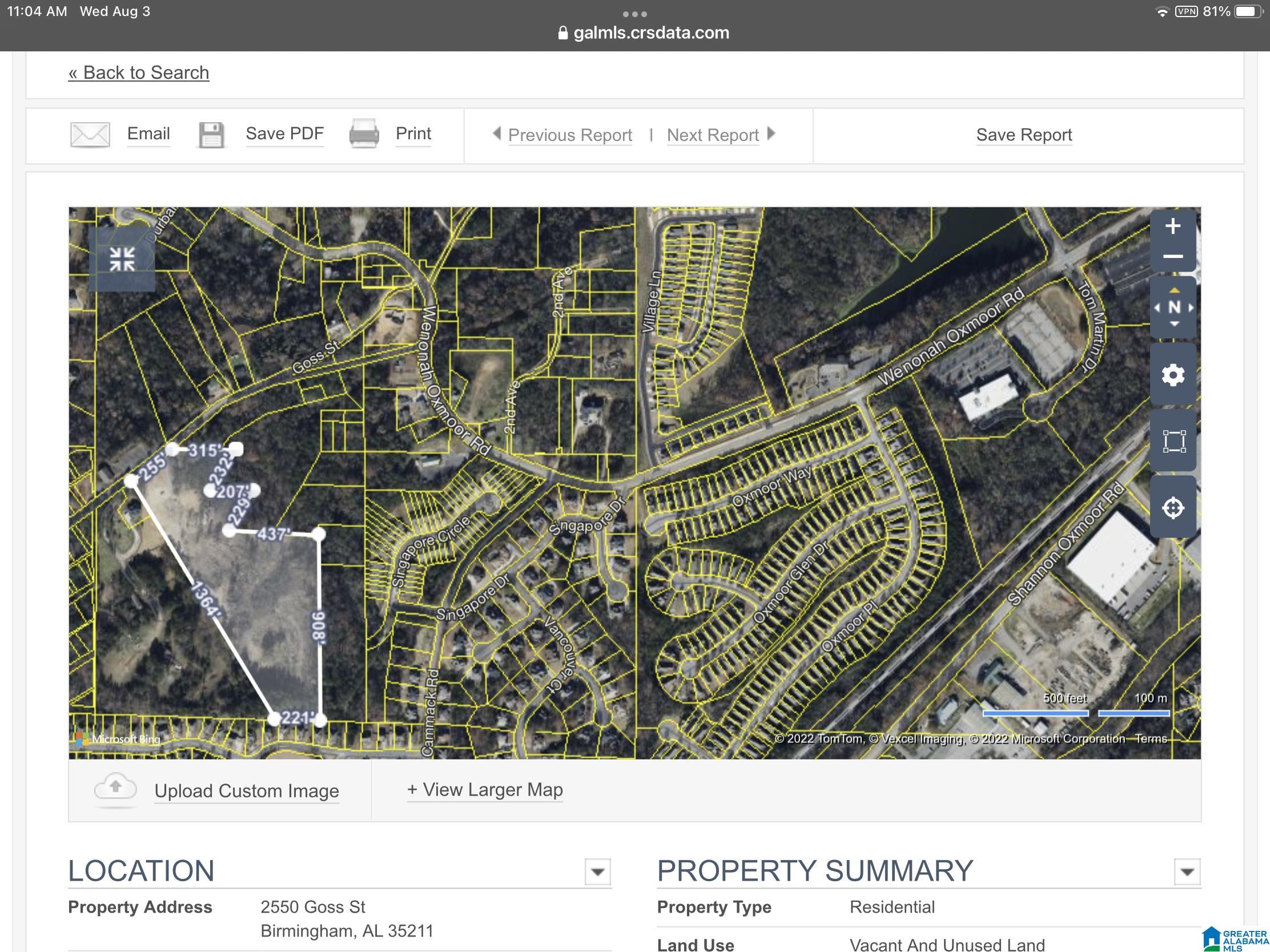 Commercial land for sale in growing Oxmoor Valley area.