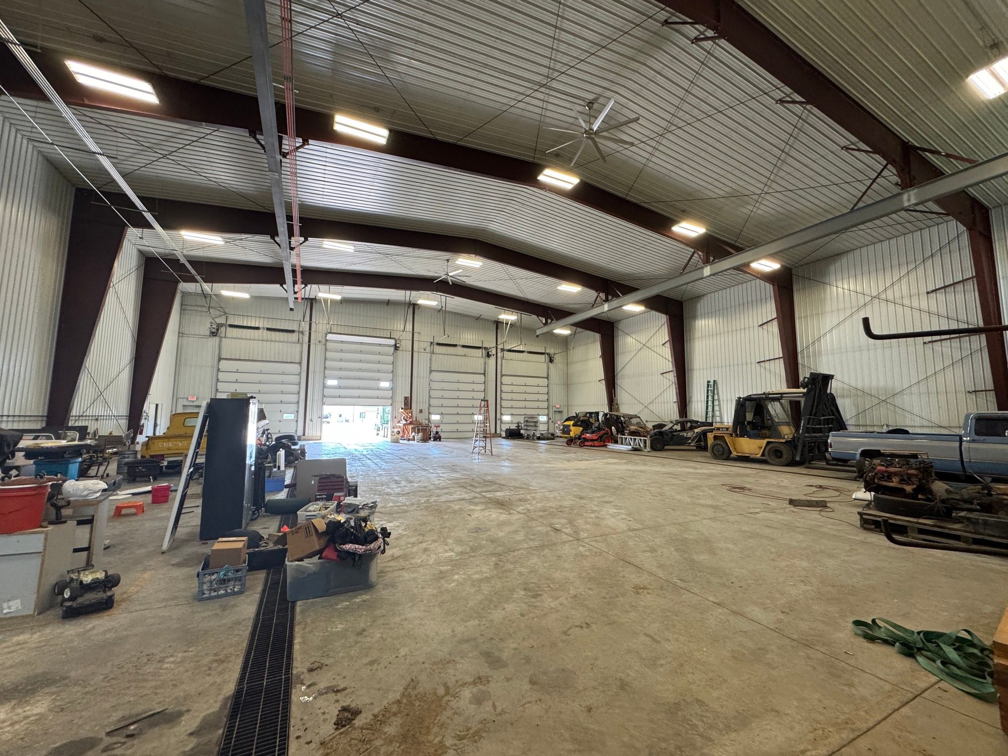 Warehouse featuring a crane, multiple doors, and interstate visibility.