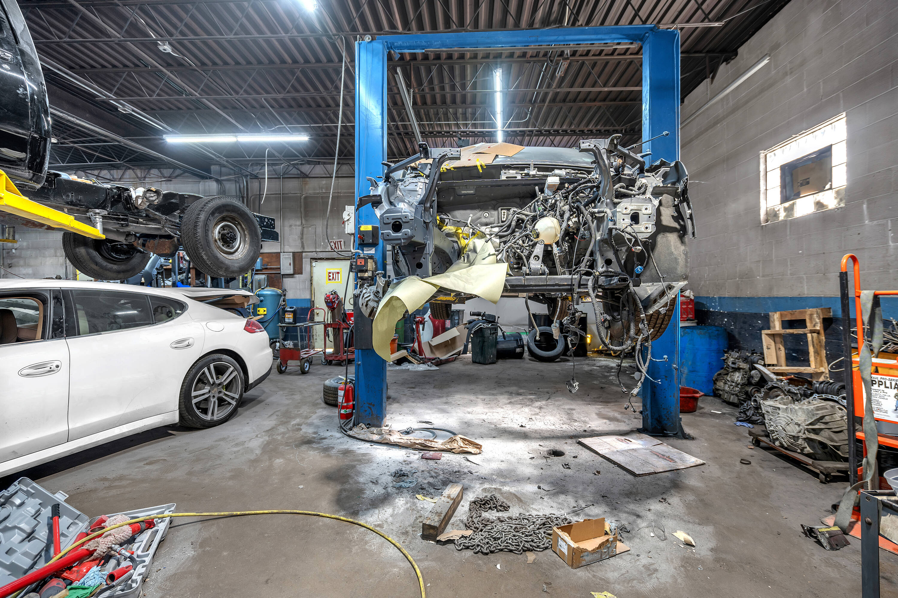 Fully equipped auto repair shop for lease in Steger, Illinois.