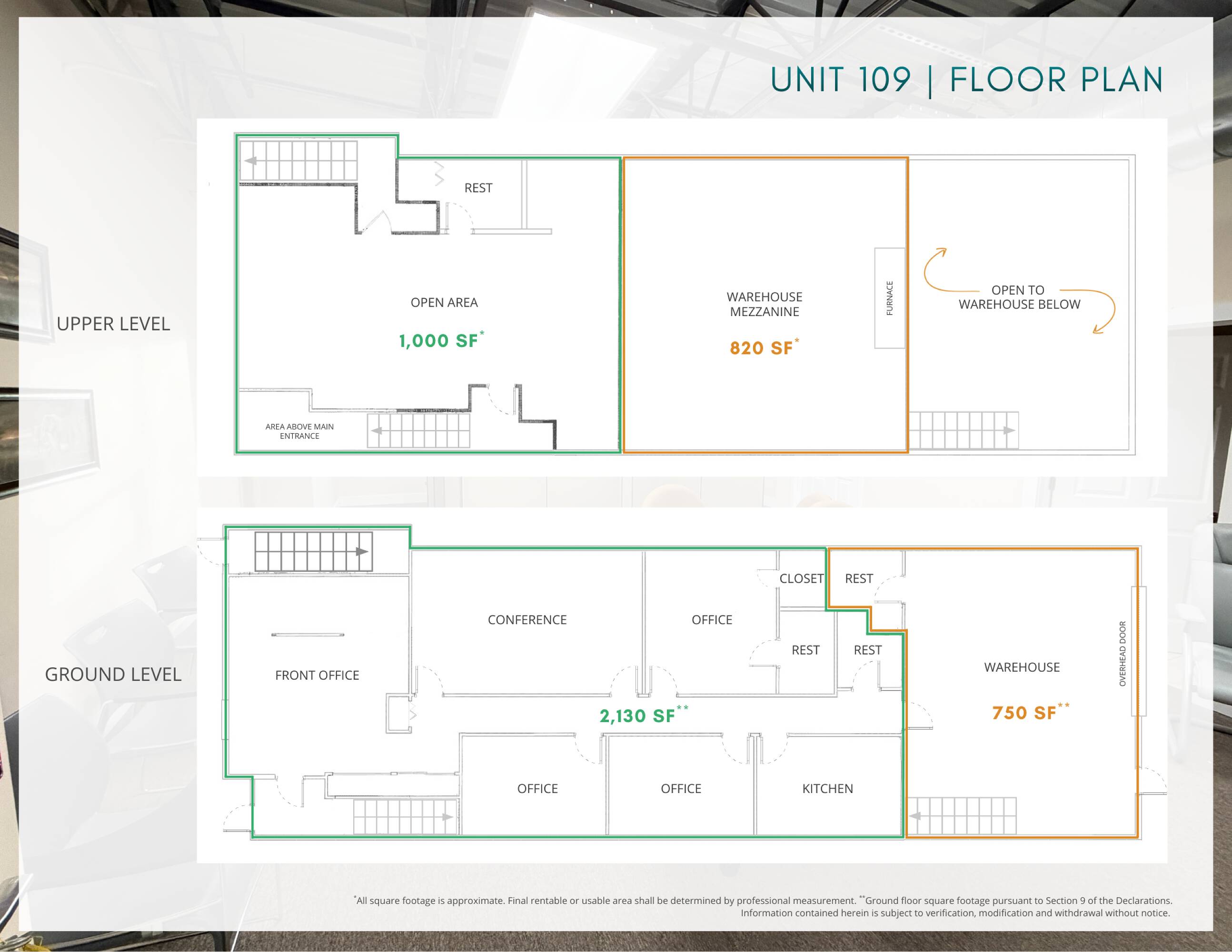 Flex condo with office, warehouse, and mezzanine space.