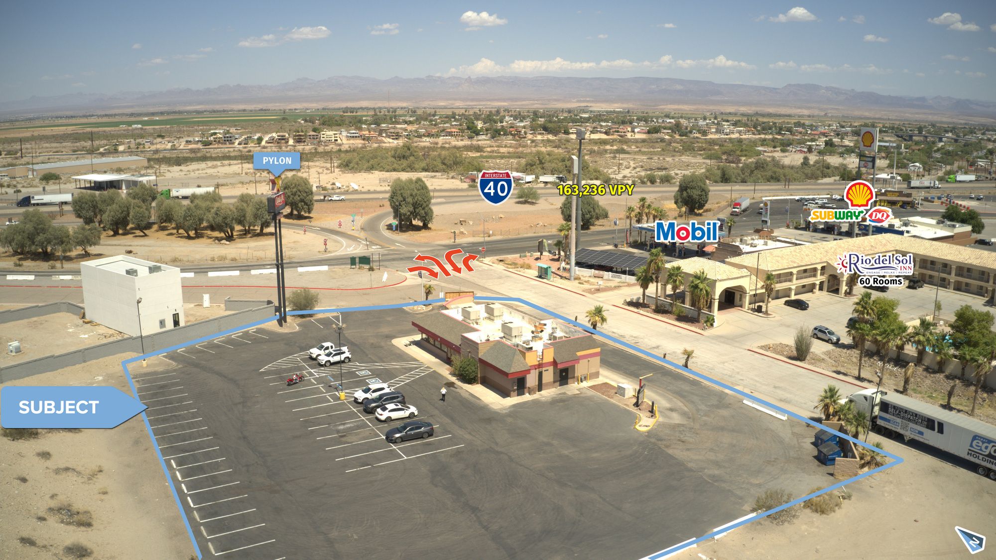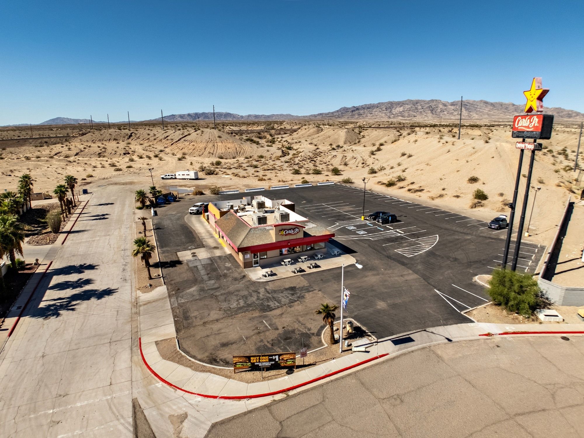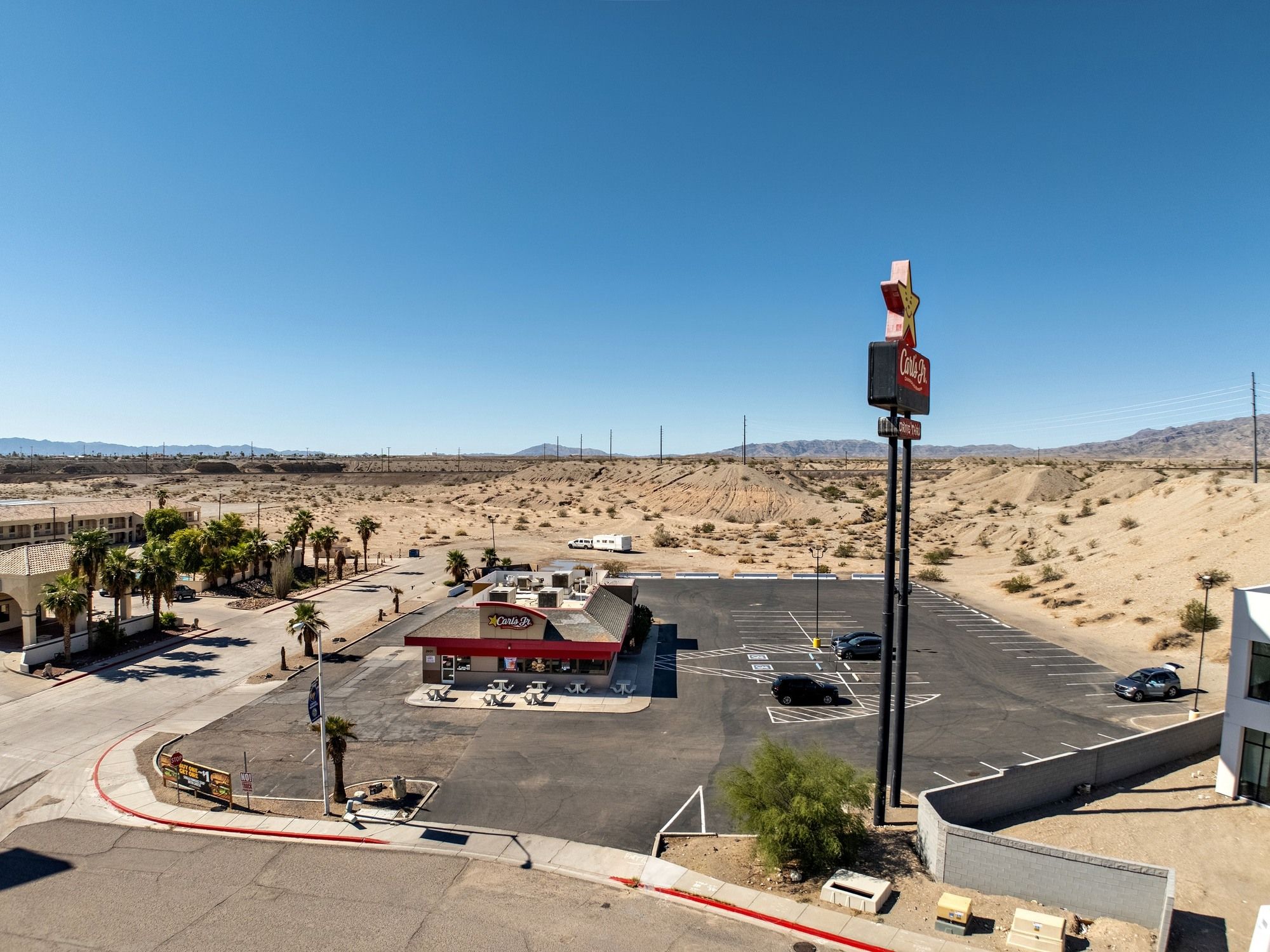 Restaurant opportunity in Needles, CA with high visibility.