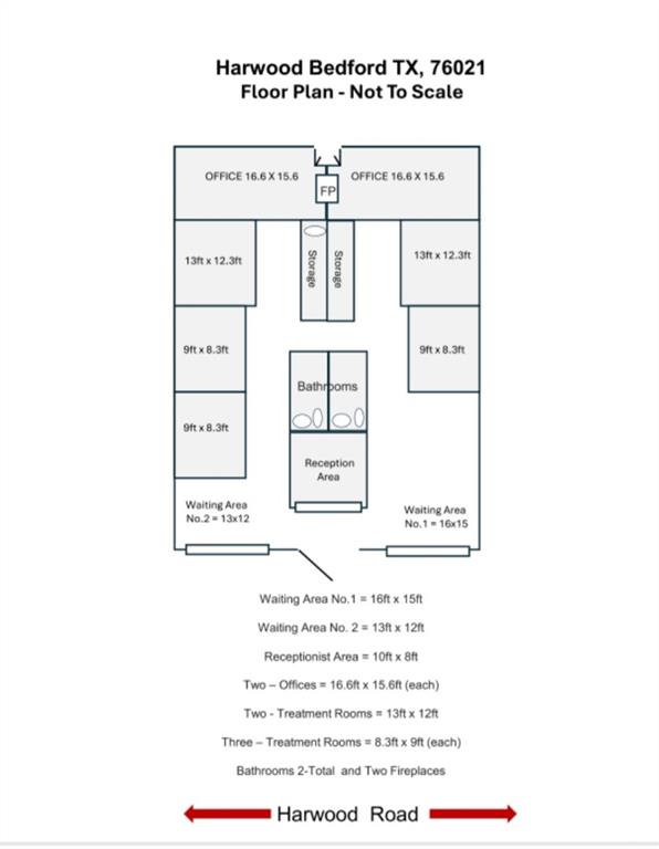 This stand-alone brick building is located in the Mid-Cities region, north of Highway 183, with an estimated general population of 147,000. Situated on Harwood Road, the location benefits from an estimated daily traffic count of 15,000 vehicles per TXDOT. The property is conveniently located near Highways 121 and 183, and is minutes from Colleyville, Southlake, Grapevine, and the DFW Airport. The building is suitable for various professional services, including legal, medical, dental, engineering, financial consulting, staffing agencies, real estate offices, and title companies. The site features a functional reception area, five spacious private treatment rooms, and two executive conference spaces. It also includes two restrooms and a file or storage area. The property is currently owner-occupied. Medical furniture and fixtures are negotiable, and the medical practice is also negotiable.