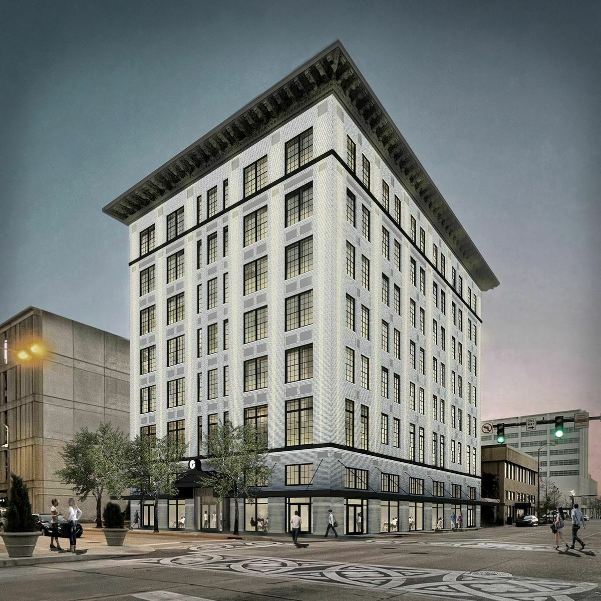 Modern office and retail space in downtown Baton Rouge.