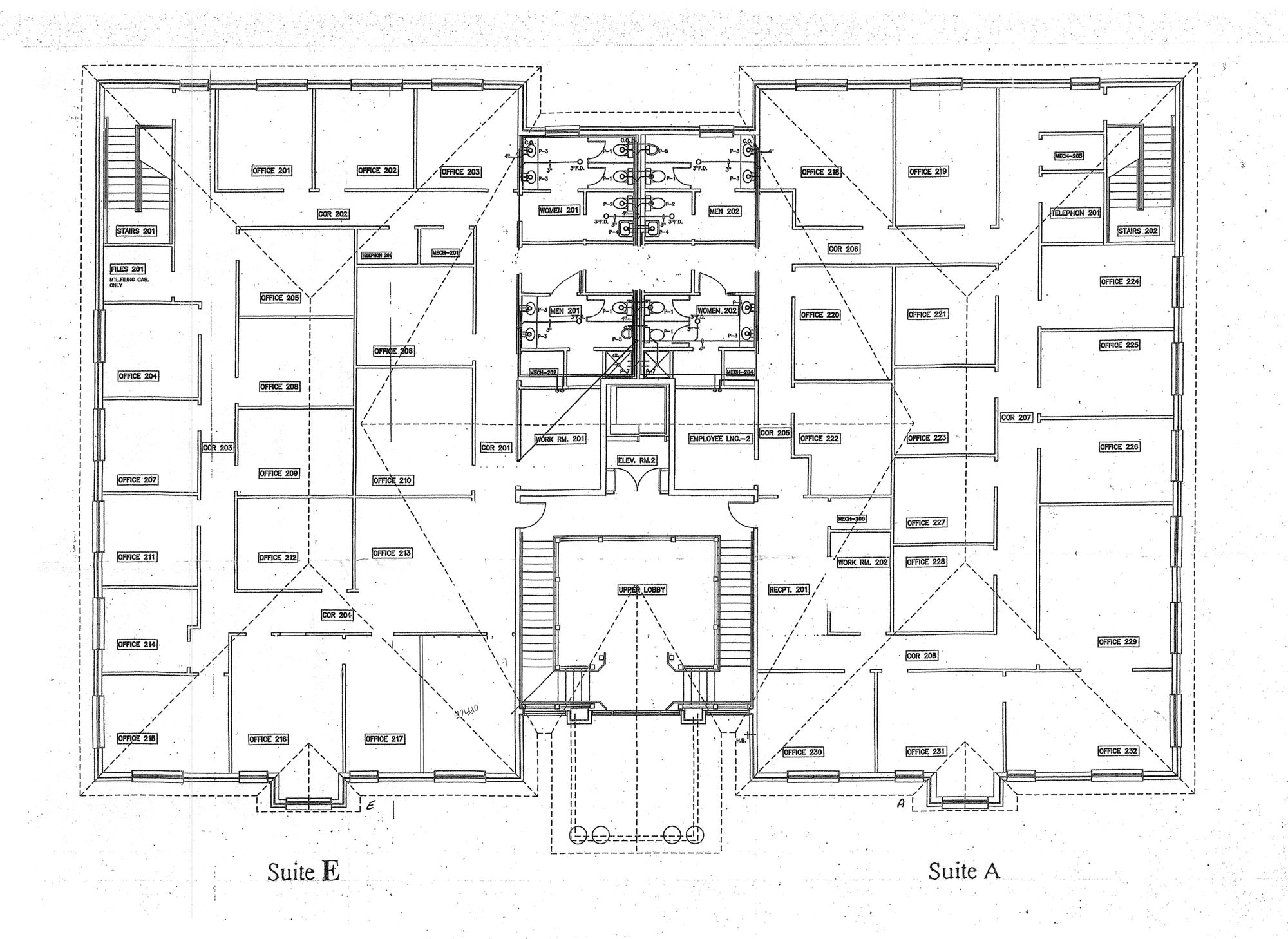 Office building with ample parking and signage available.