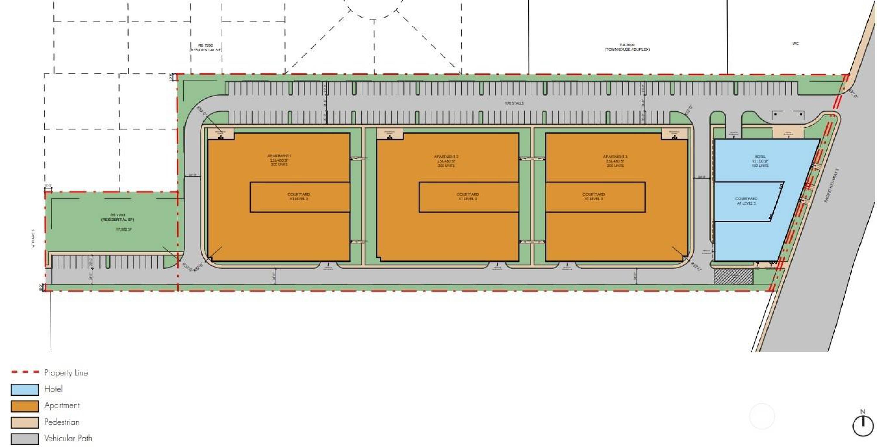 Land suitable for hotel, apartments, or commercial development.