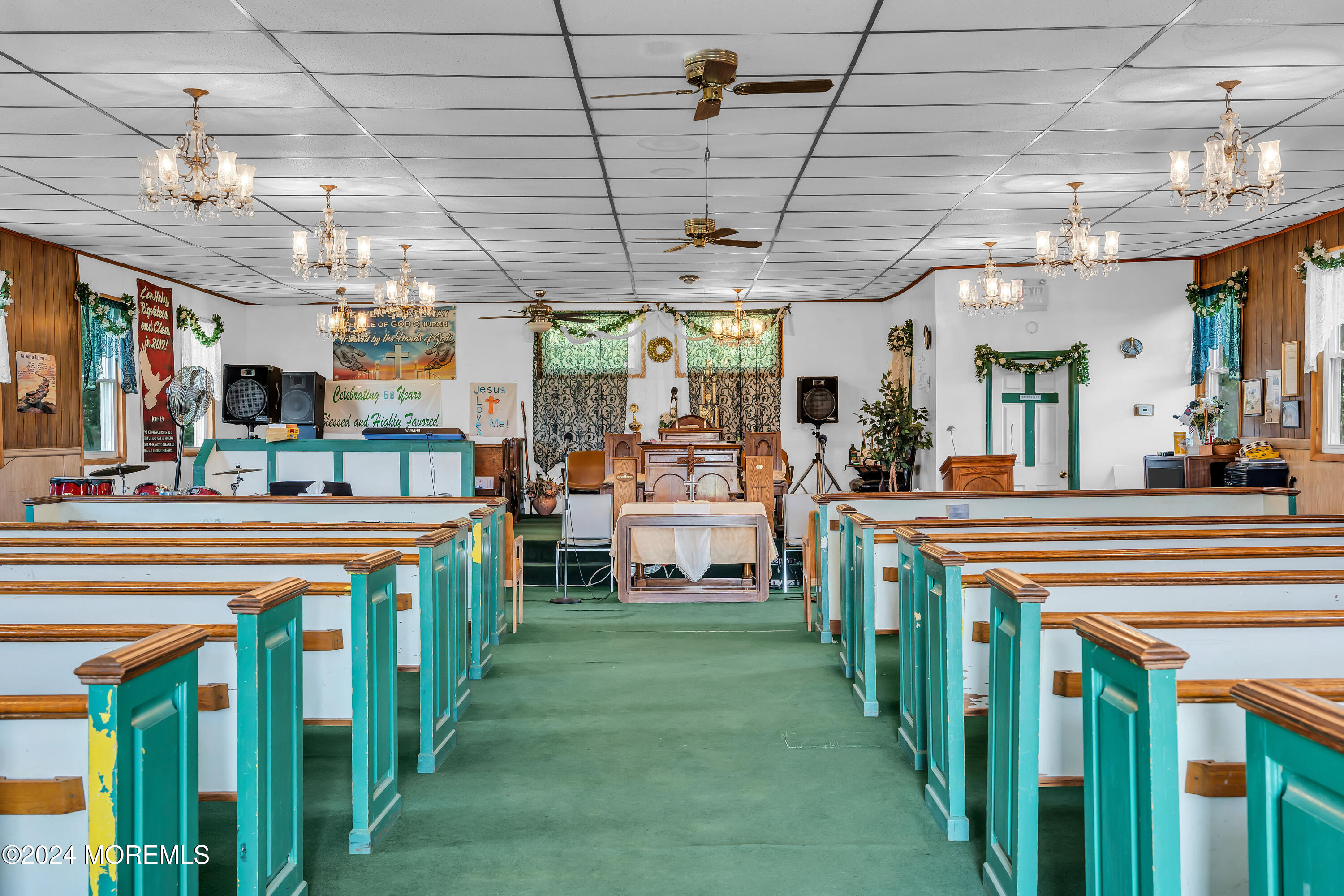 Church with parking, kitchen, community room on 0.66 acres.