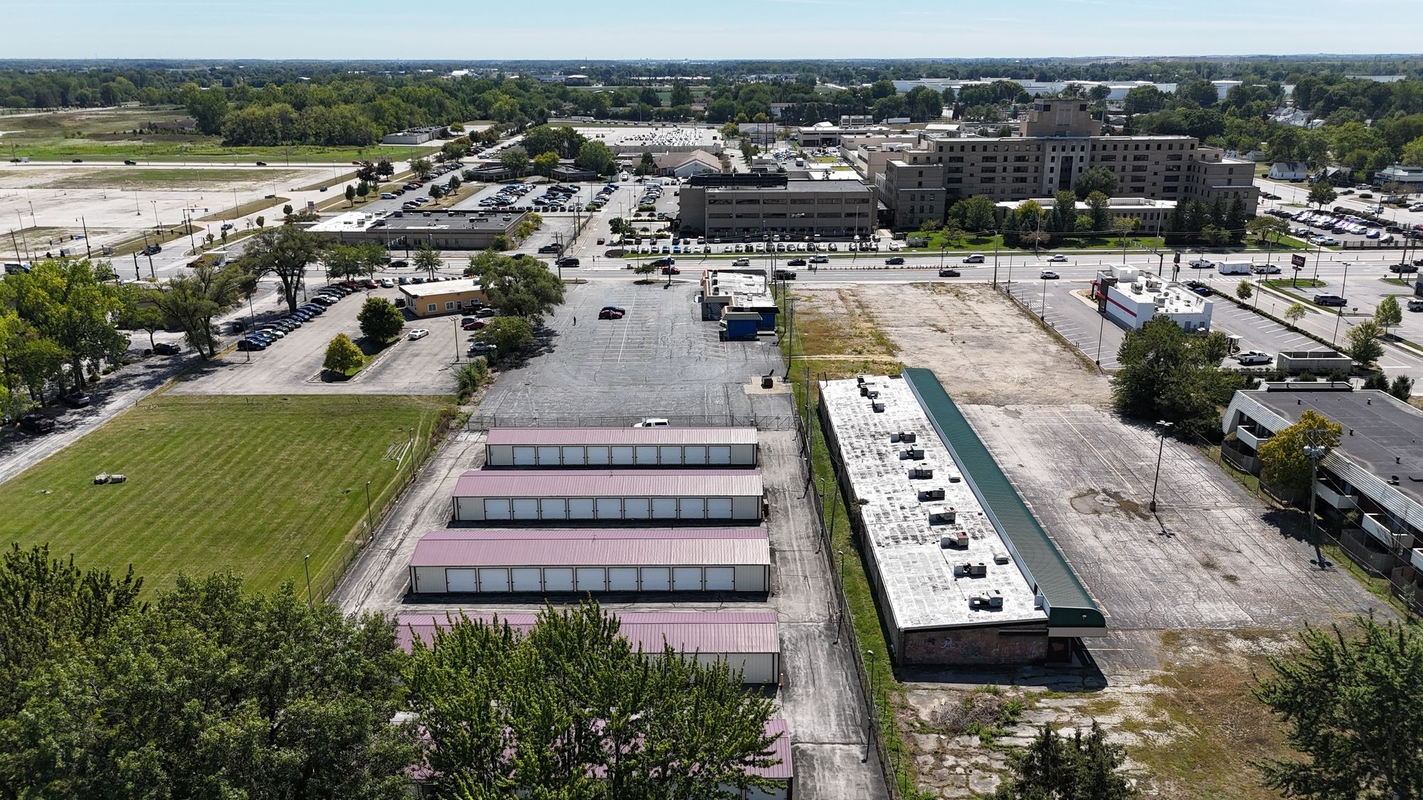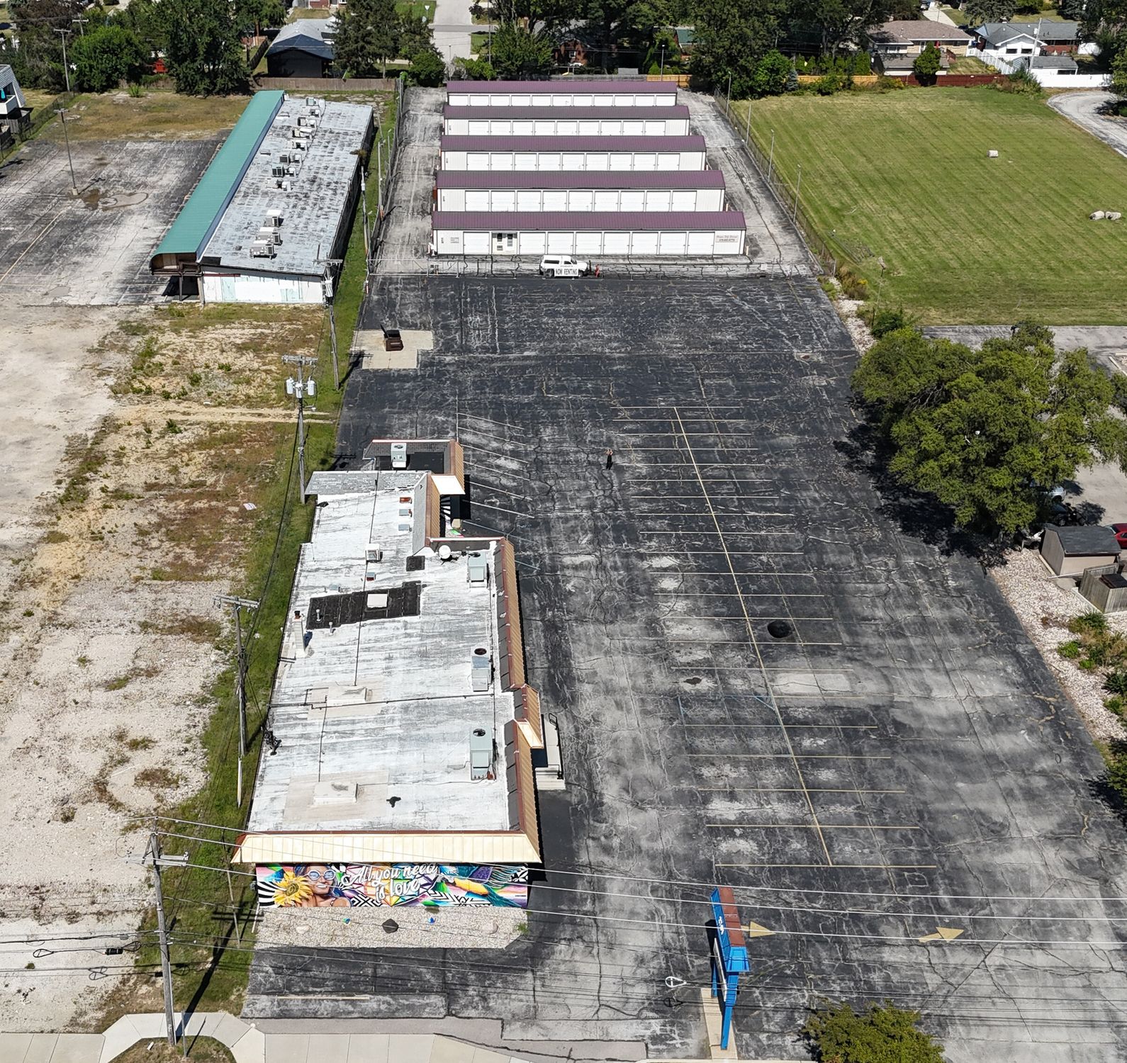 Retail, storage, and parking property on high-traffic Navarre Avenue.