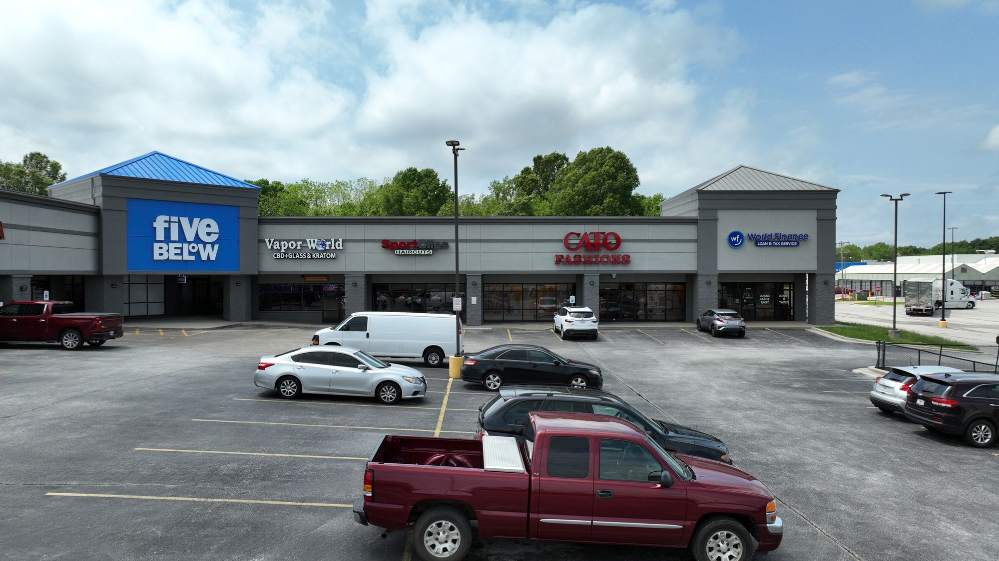 Retail space with high visibility and ample parking available for lease.