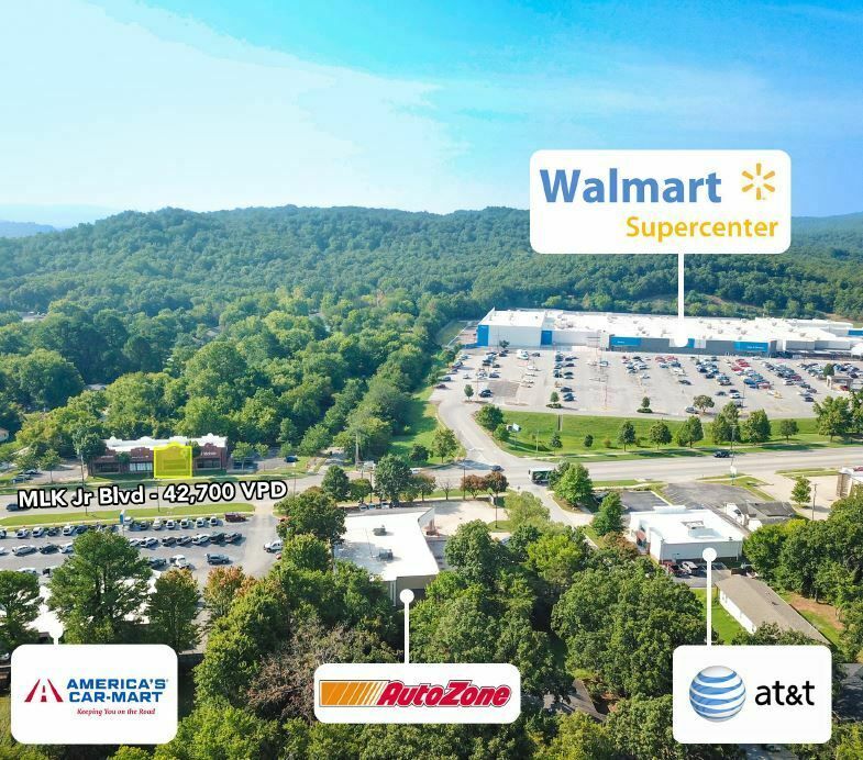 Retail space with frontage on MLK Jr. Blvd near Walmart.