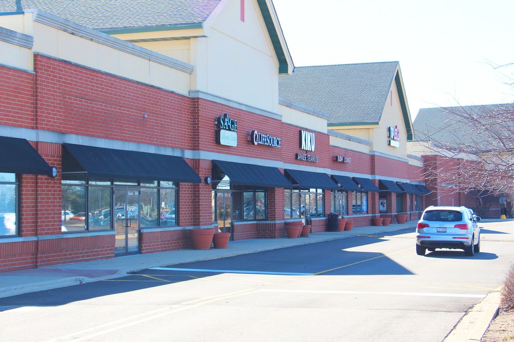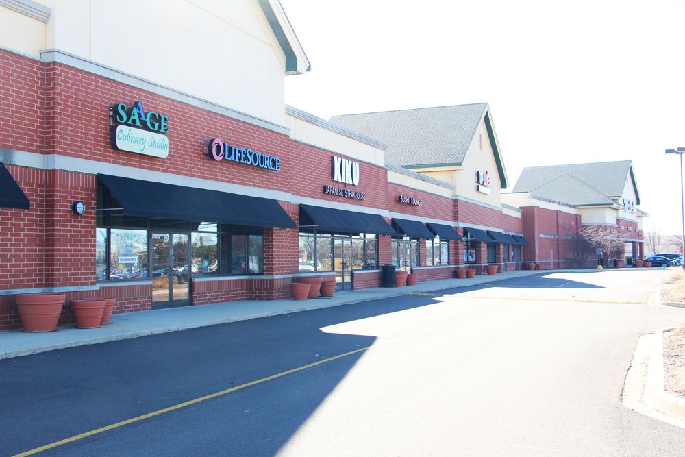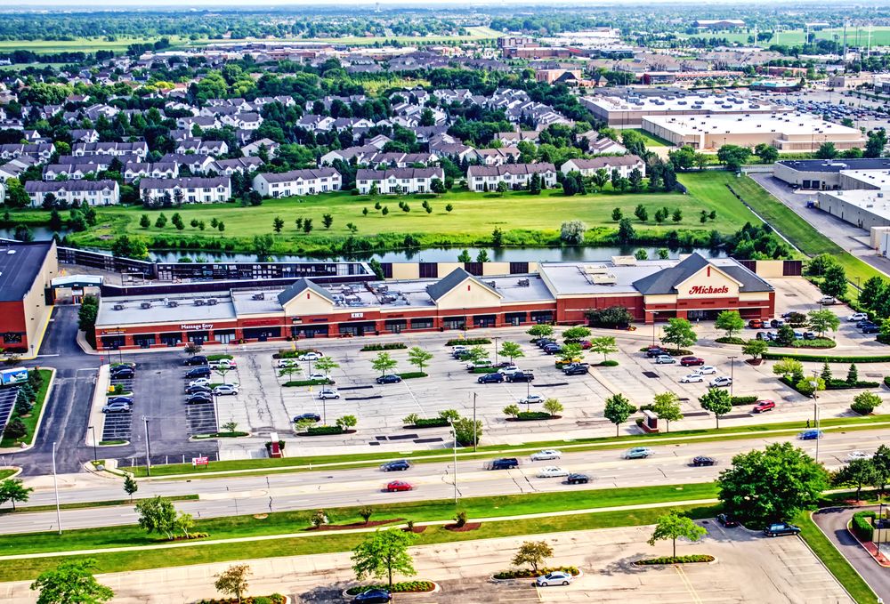 Retail and restaurant spaces in a busy Naperville retail corridor.