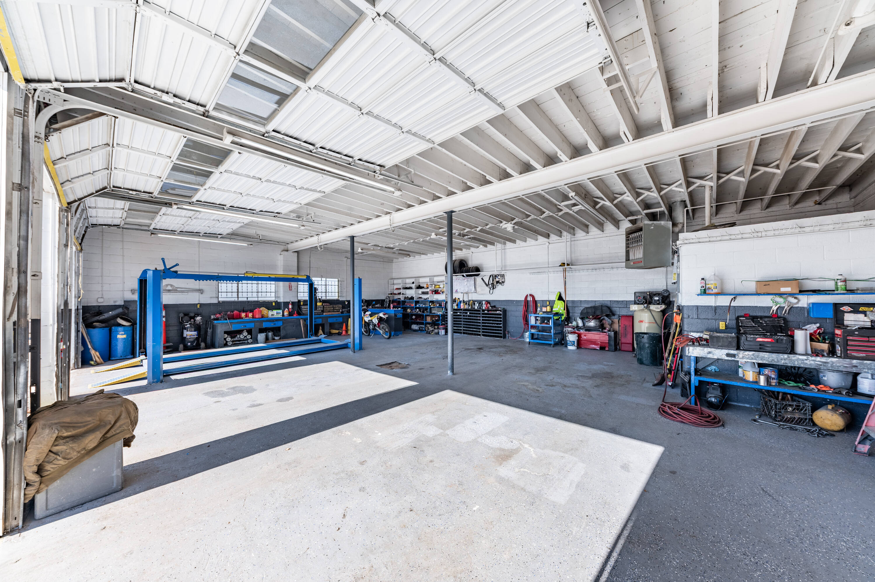 Multi-parcel property with service garage, station, car wash.