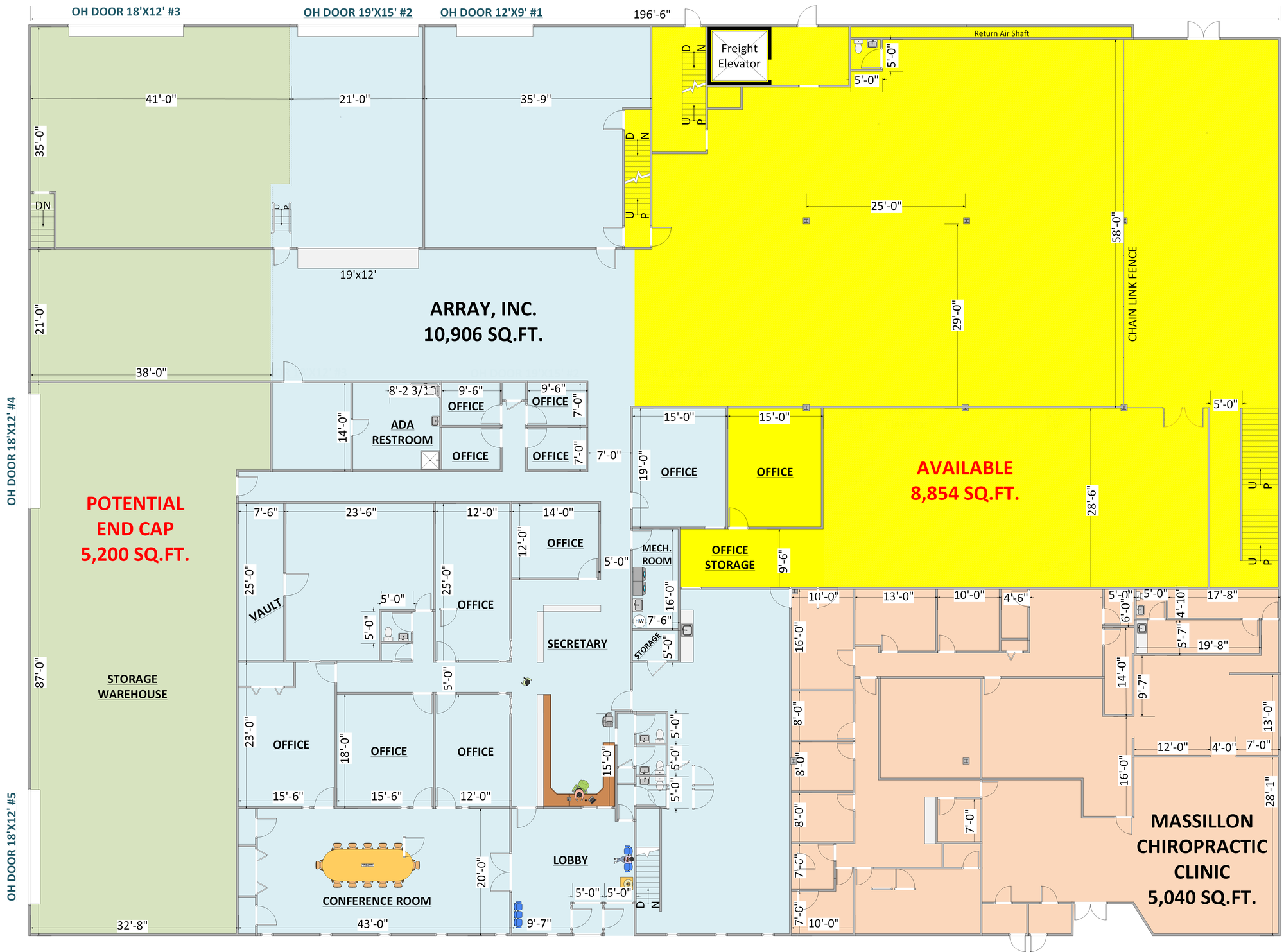 Distribution center with office and retail space in downtown Massillon.