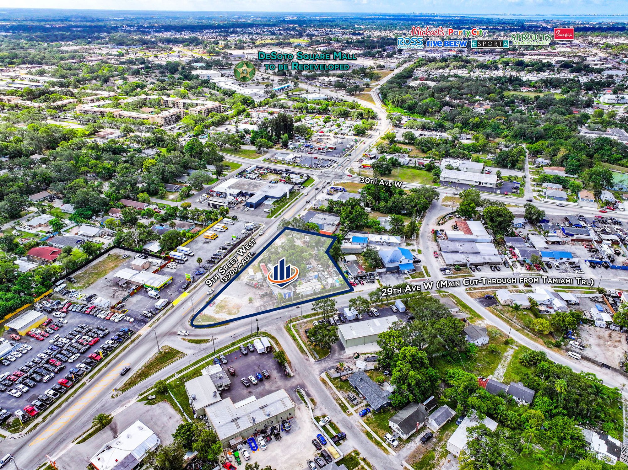 High-visibility commercial land suitable for various businesses in Bradenton, Florida.