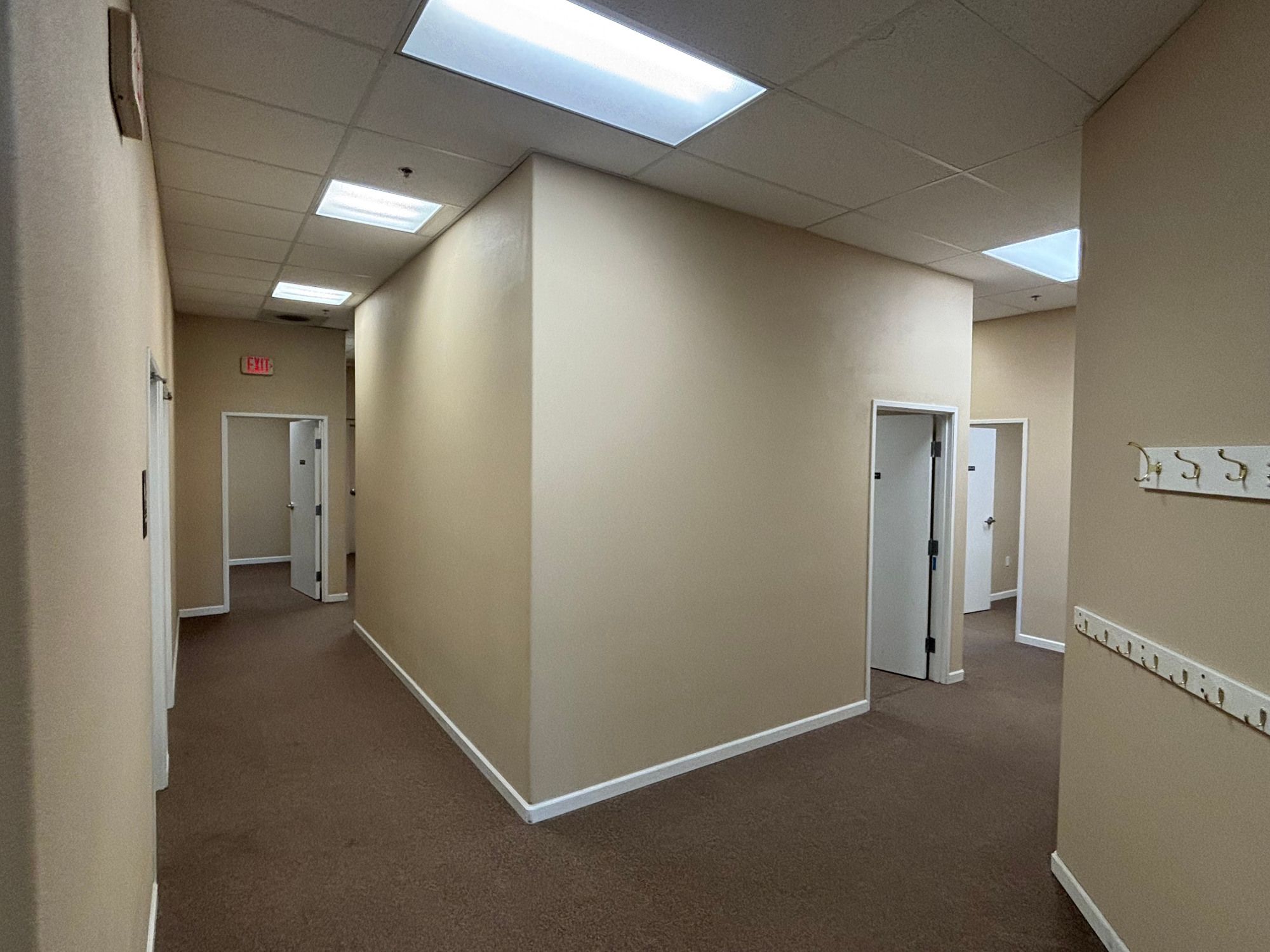 Newly renovated office space with open layout and highway visibility.
