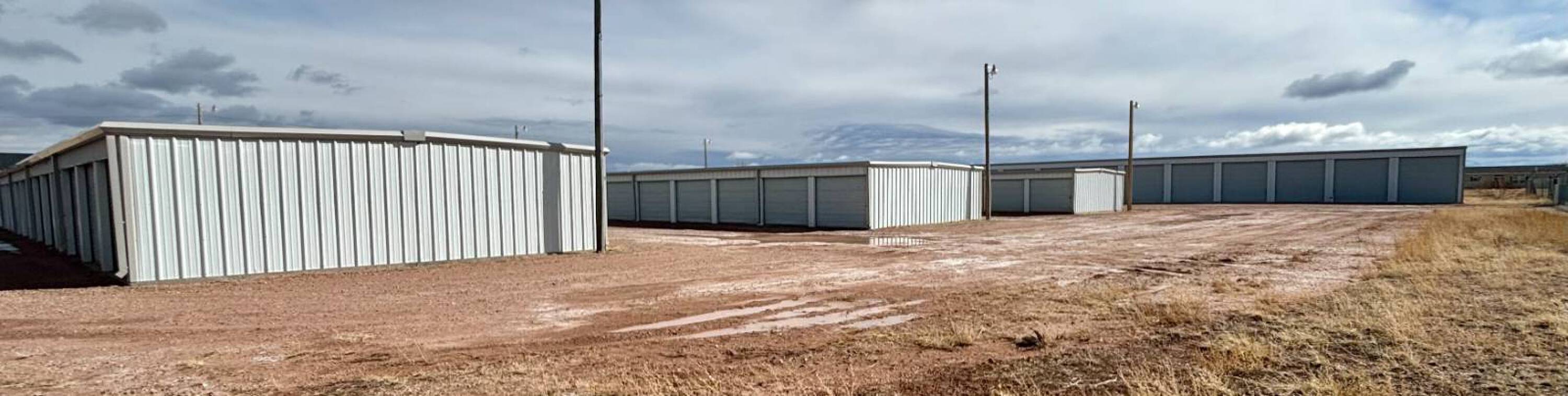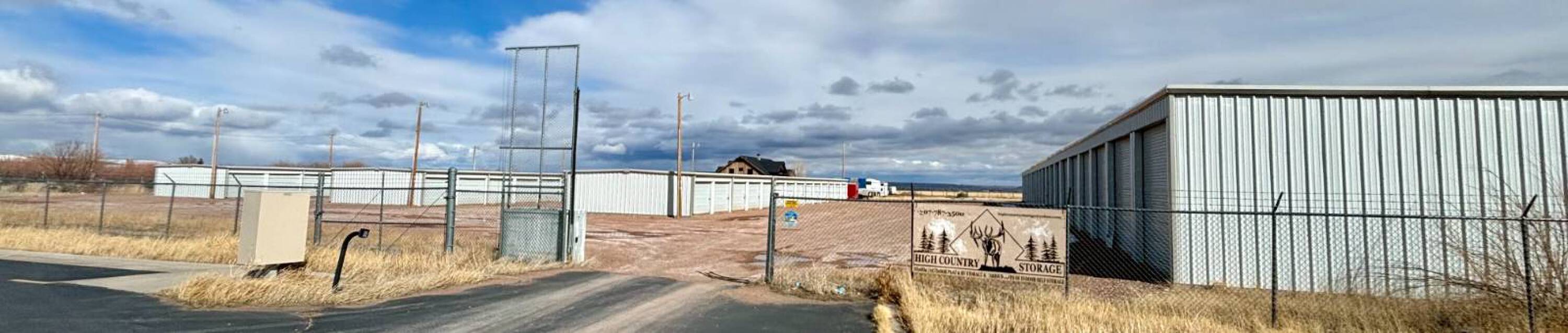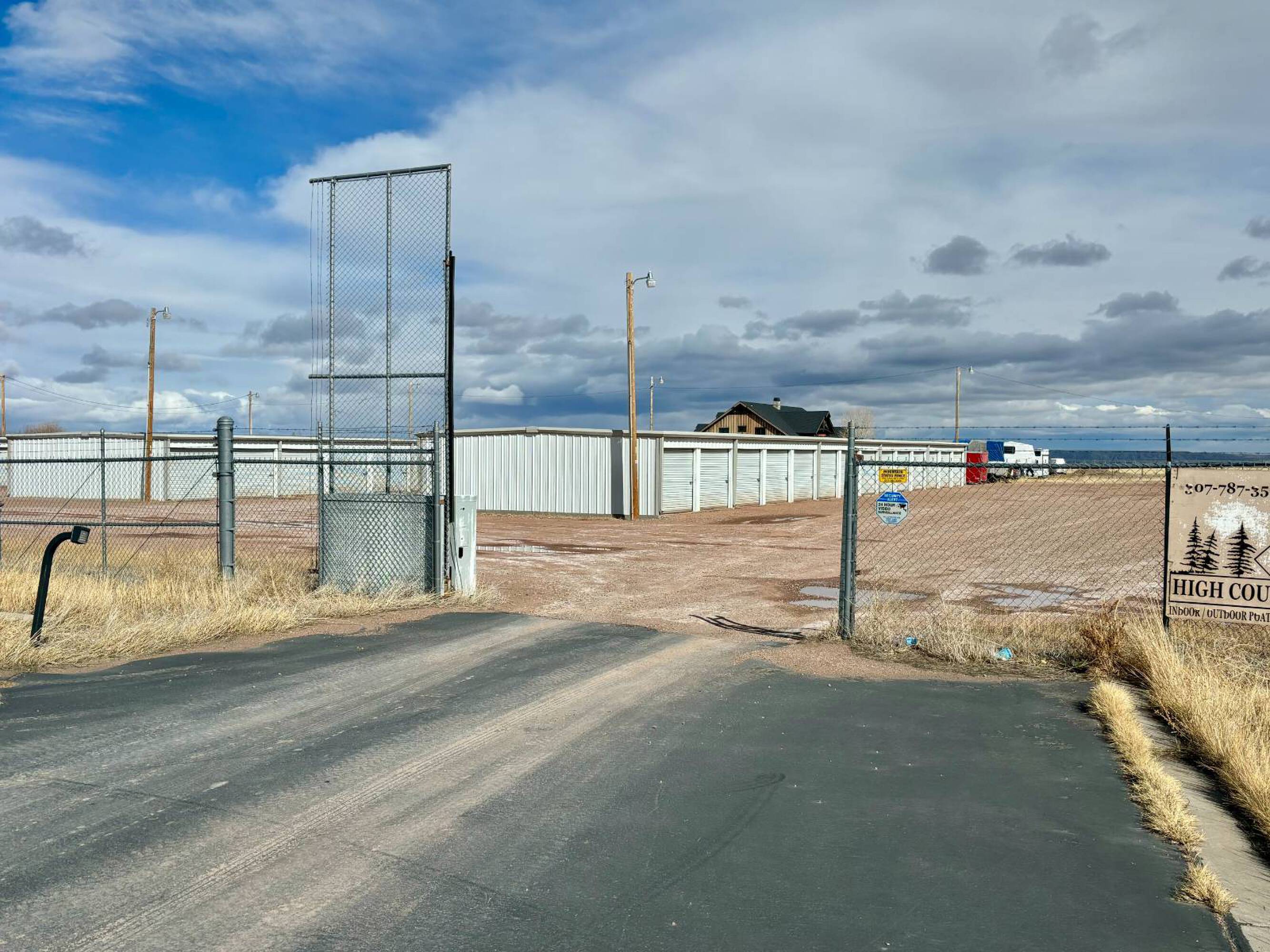 Gated self-storage facility with diverse units and outdoor storage.